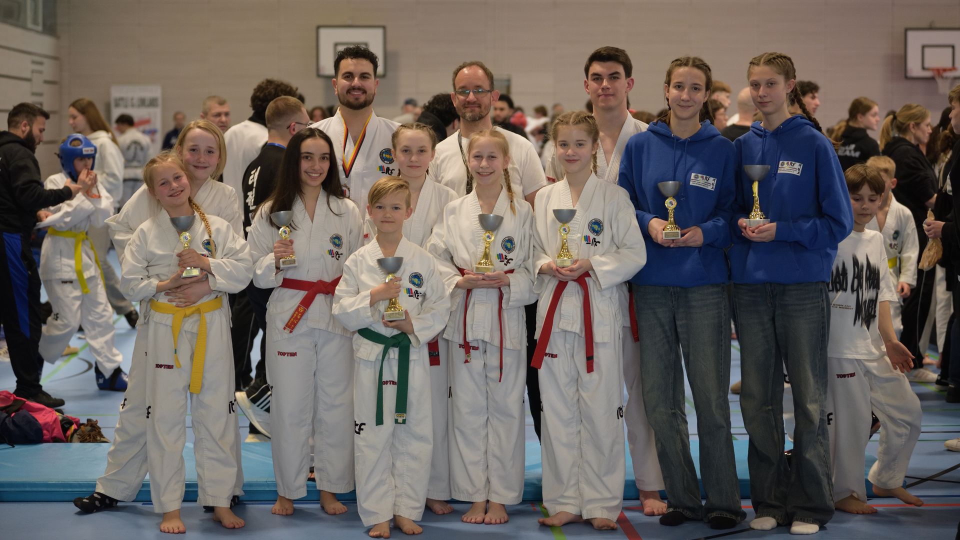 Am Samstag, d en 28.03.2026 fand in Monheim zum Auftakt des Turnierjahres die ITF-D Open 2026 statt. In einer neueröffneten Achtfach-Halle starteten Sportler*innen aus Deutschland, den Niederlanden, Belgien und Lettland. Sogar ein Sportler aus Argentinien nahm teil. Aus unserem Verein meldeten sich 11 Sportler*innen, die in der Kategorie Tul (Formen) teilnahmen. Drei davon nahmen ebenfalls in der Kategorie Spezialbruchtest teil. Bei den Tuls konnten diesmal die jüngeren Sportler*innen des Chang Hun Taekwon-Do Gelsenkirchen e. V. Ihre jeweiligen Gruppen dominieren. So erzielten Moritz, Luisa und Emma hervorragende erste Plätze. Bei den älteren Sportler*innen über 18 Jahren konnten zudem - in ihrem ersten Turnier seit langem - Alican den dritten Platz und Ilayda den zweiten Platz belegen. Für alle anderen reichte es leider an diesem Tag nicht auf das Podest bei der Tul. Svea, Paulina und Emily starteten zudem beim Spezial-Bruchtest, bei dem ein Brett in großer Höhe mit Fußtechniken umgeklappt werden muss. Hierbei sind zwei Techniken vorgeschrieben. Hier belegte Svea wieder mal den ersten Platz. Paulina, die diesmal in einer höheren Altersgruppe starten musste, konnte sich gegen ältere Gegnerinnen durchsetzen und nach Svea einen tollen zweiten Platz belegen. Ähnlich ging es Emily, die sich in der Gruppe der unter 18jährigen im Stechen um den ersten Platz einer Niedeländerin geschlagen geben musste und ebenfalls einen tollen zweiten Platz belegte. Insgesamt reichten die Ergebnisse unseres Vereins für Platz 12 von 42 Vereinen, was mal wieder einen großen Erfolg für uns darstellt. Wir gratulieren unseren Sportler*nnen zu Ihren Erfolgen und freuen uns über diese Ergebnisse. Vorstand, Trainer und Coaches des CHTKDG