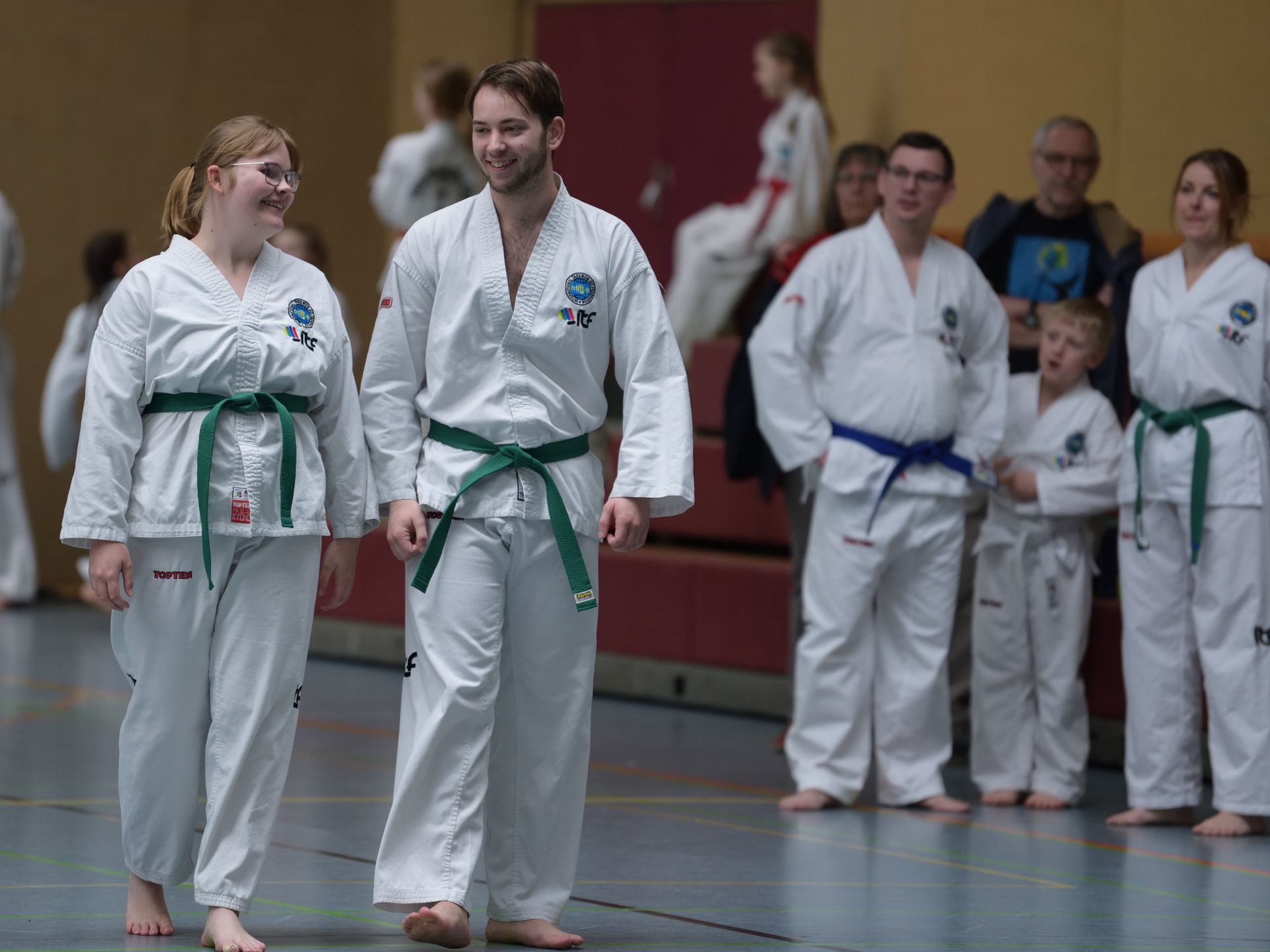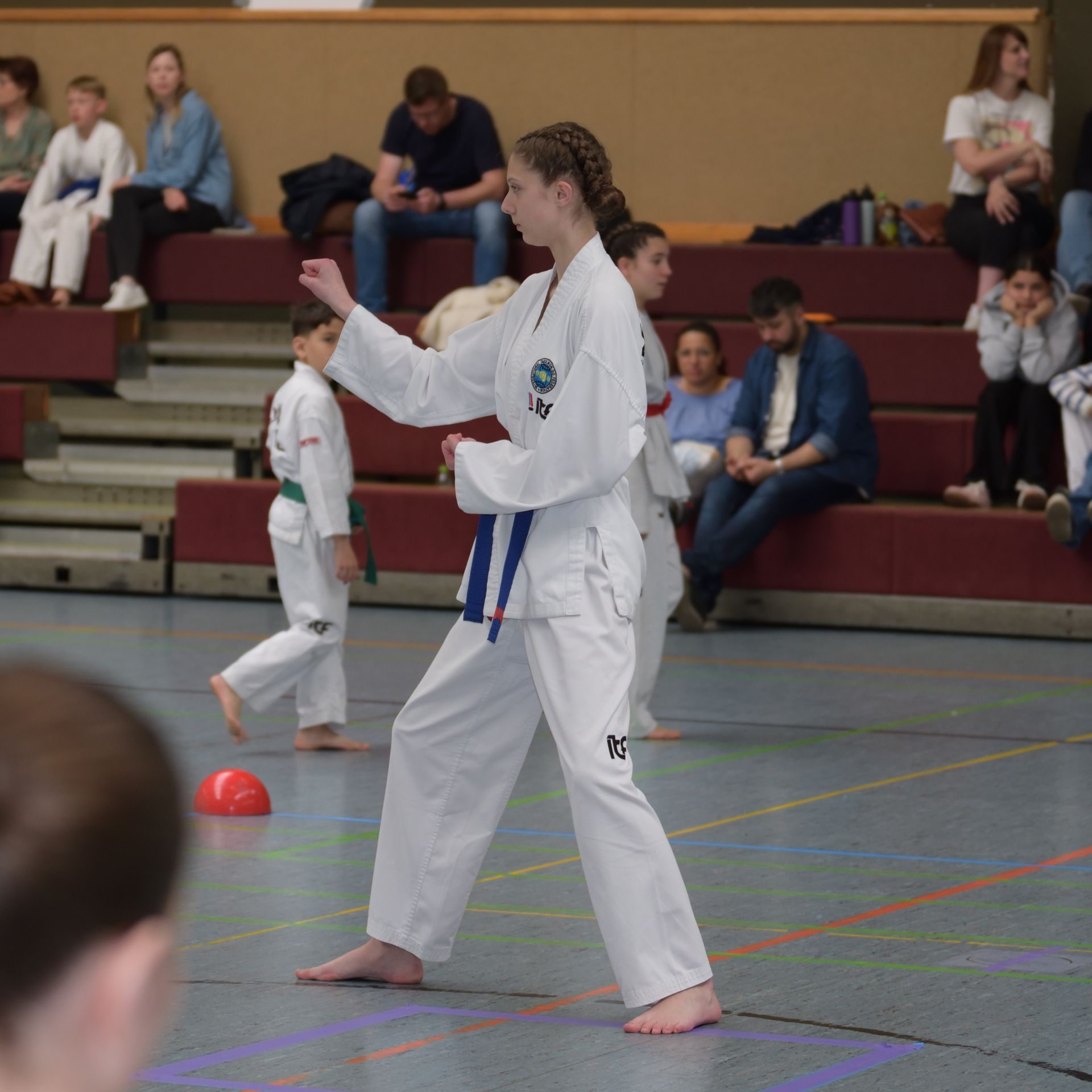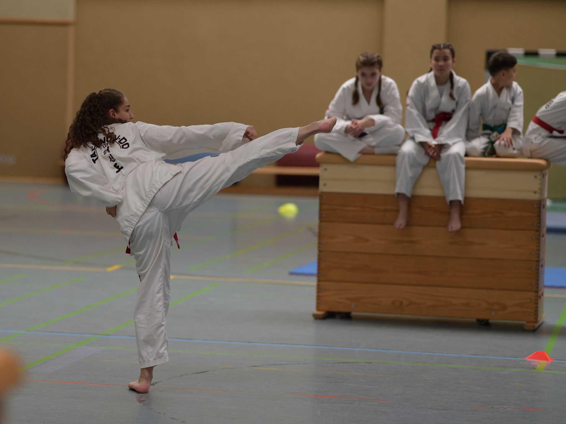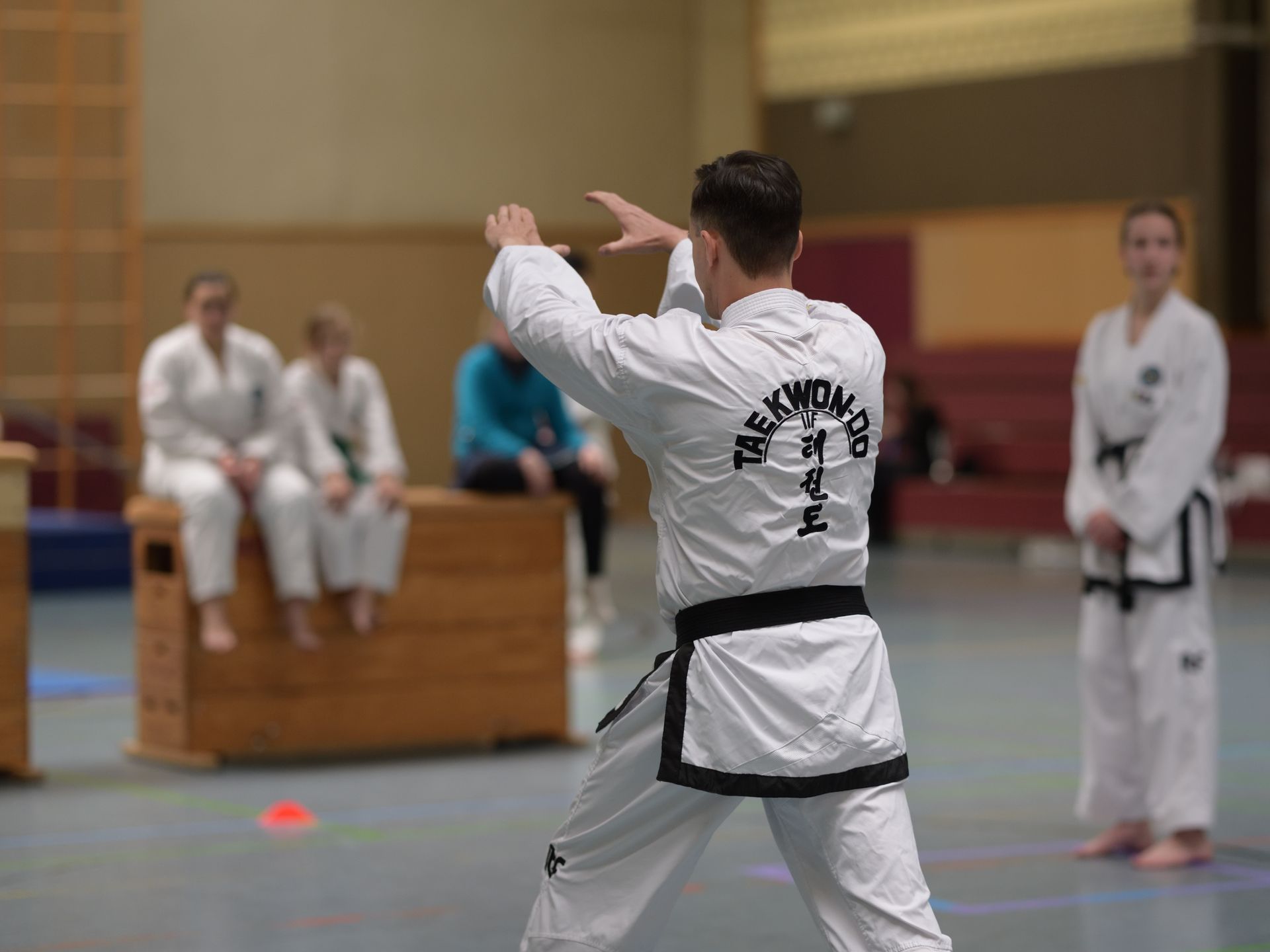 In einer Vorführung wurde zudem die Bandbreite des Taekwon-Do gezeigt. Es wurden Tul, Hand- und Fußtechniken sowie Selbstverteidigungstechniken gezeigt. Drei Sportlerinnen hatten zudem eine choreografierte Team-Tul einstudiert.
