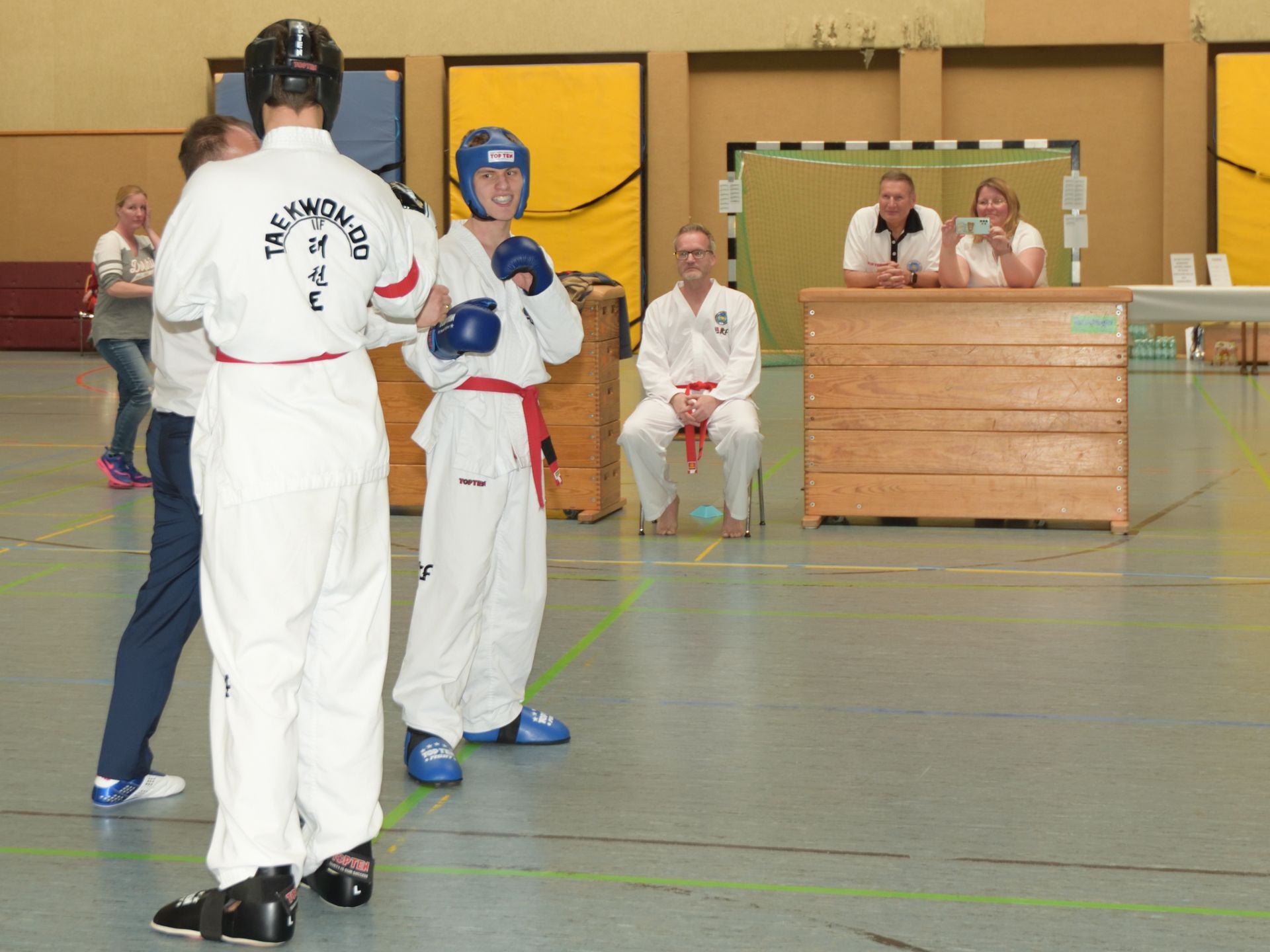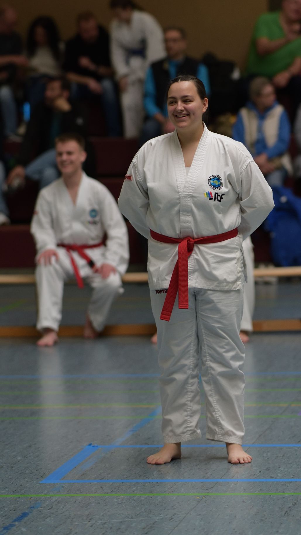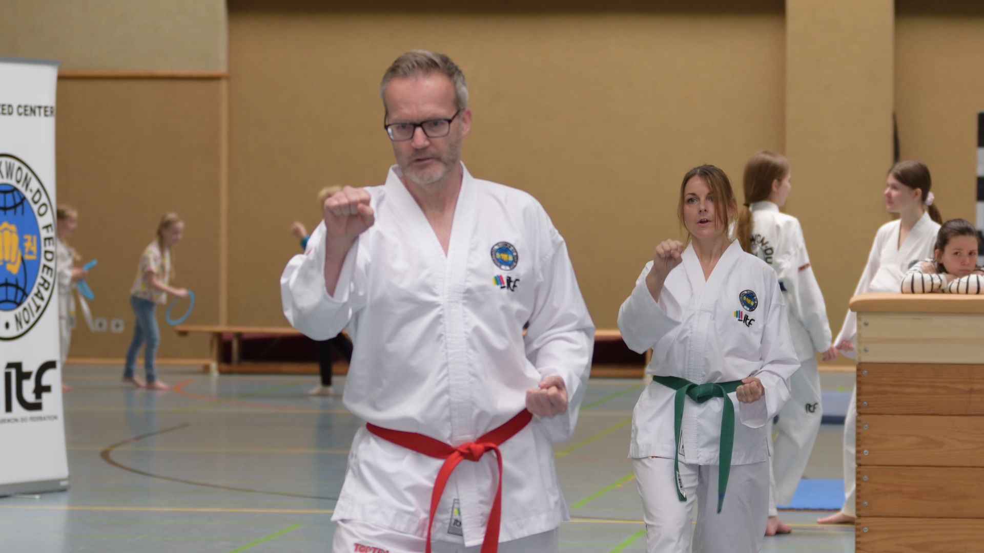 In einer Vorführung wurde zudem die Bandbreite des Taekwon-Do gezeigt. Es wurden Tul, Hand- und Fußtechniken sowie Selbstverteidigungstechniken gezeigt. Drei Sportlerinnen hatten zudem eine choreografierte Team-Tul einstudiert.