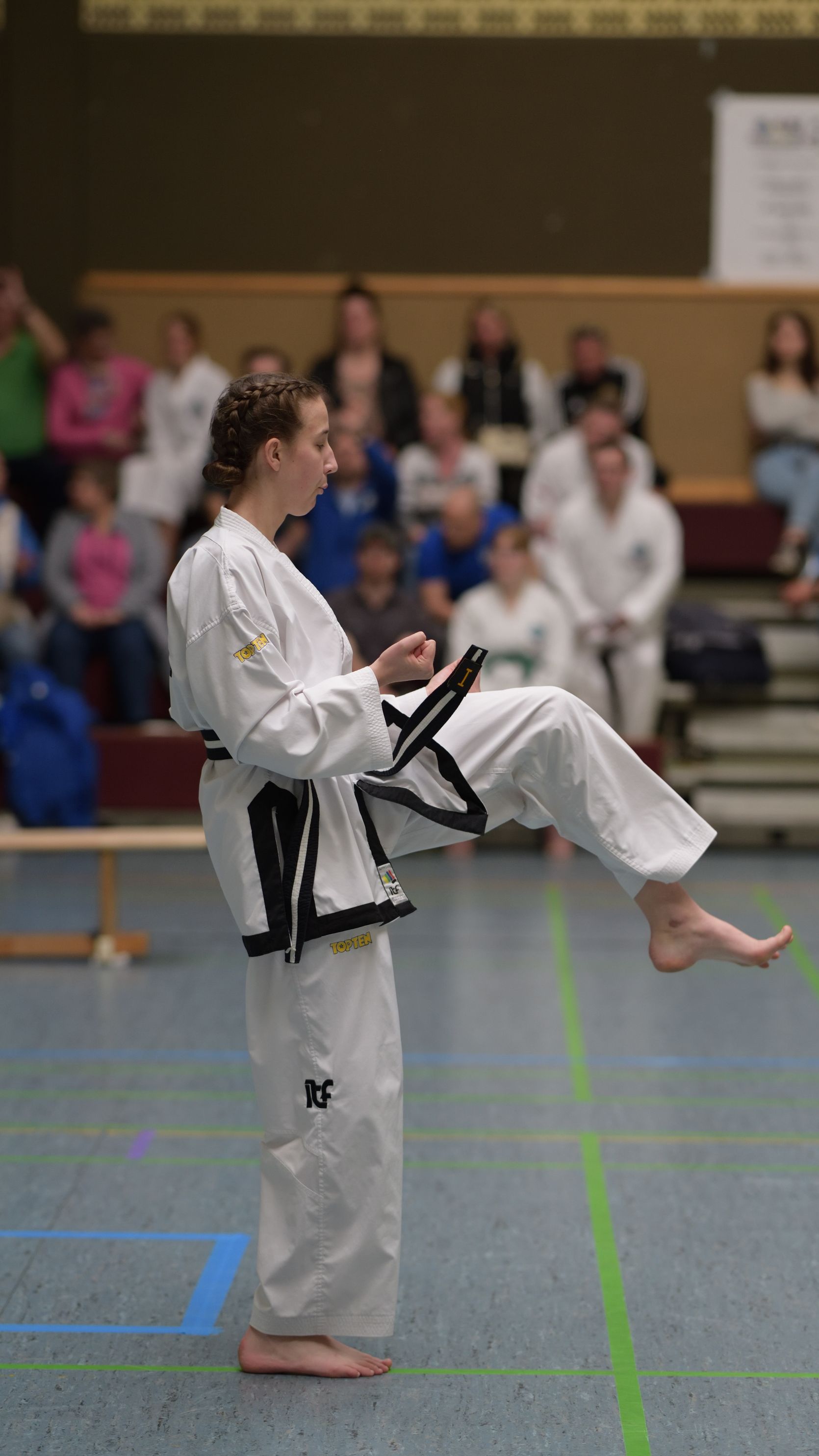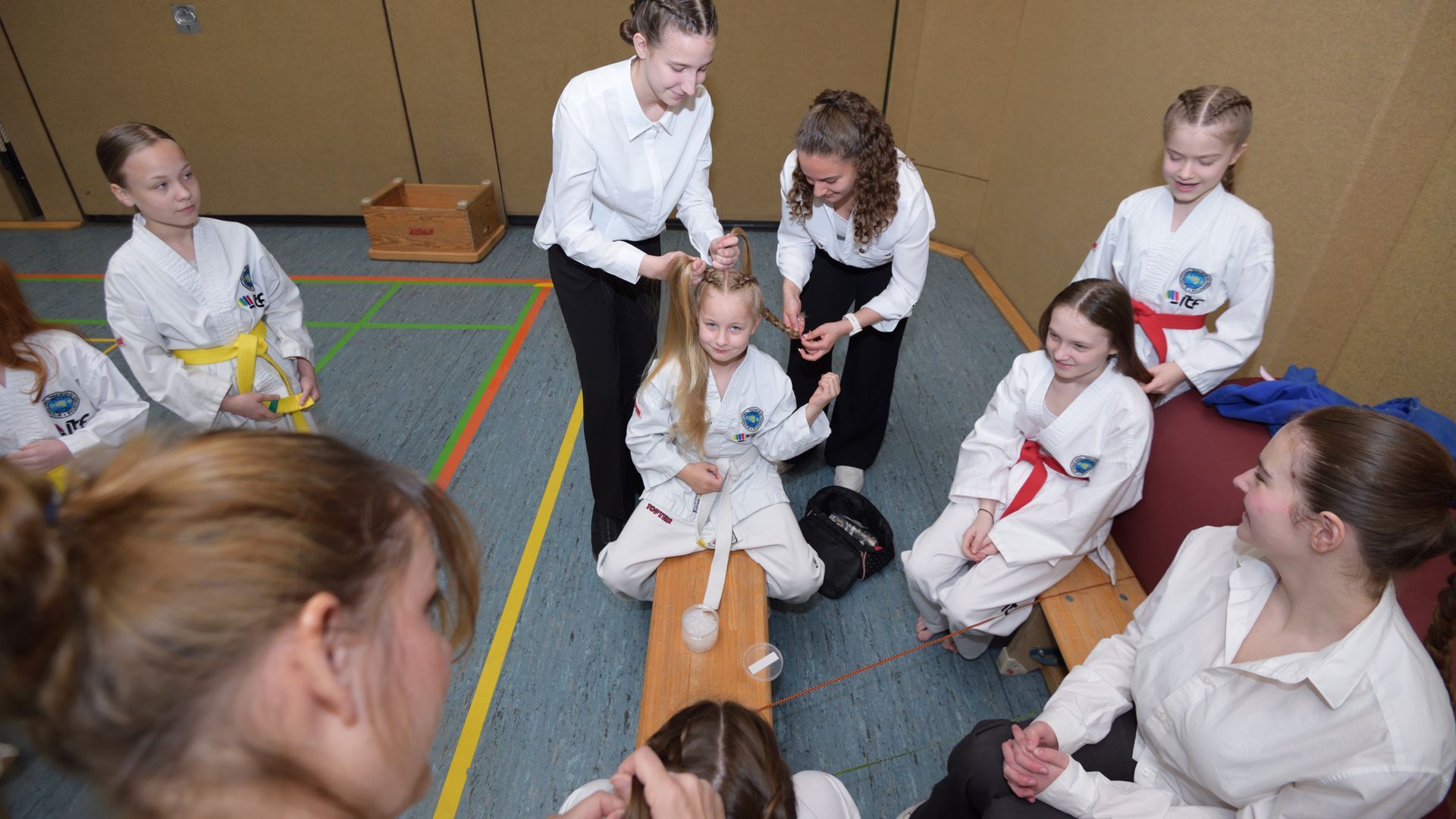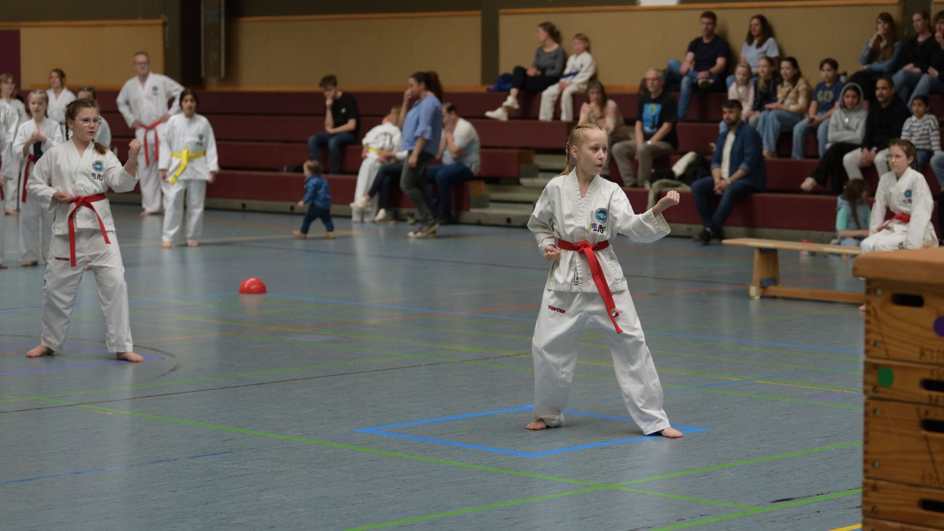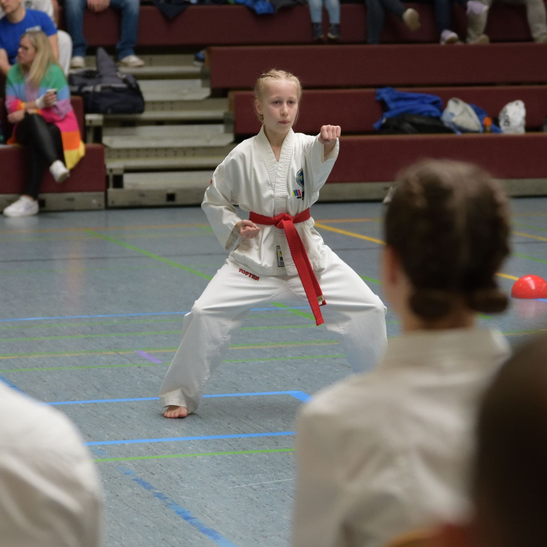 In einer Vorführung wurde zudem die Bandbreite des Taekwon-Do gezeigt. Es wurden Tul, Hand- und Fußtechniken sowie Selbstverteidigungstechniken gezeigt. Drei Sportlerinnen hatten zudem eine choreografierte Team-Tul einstudiert.