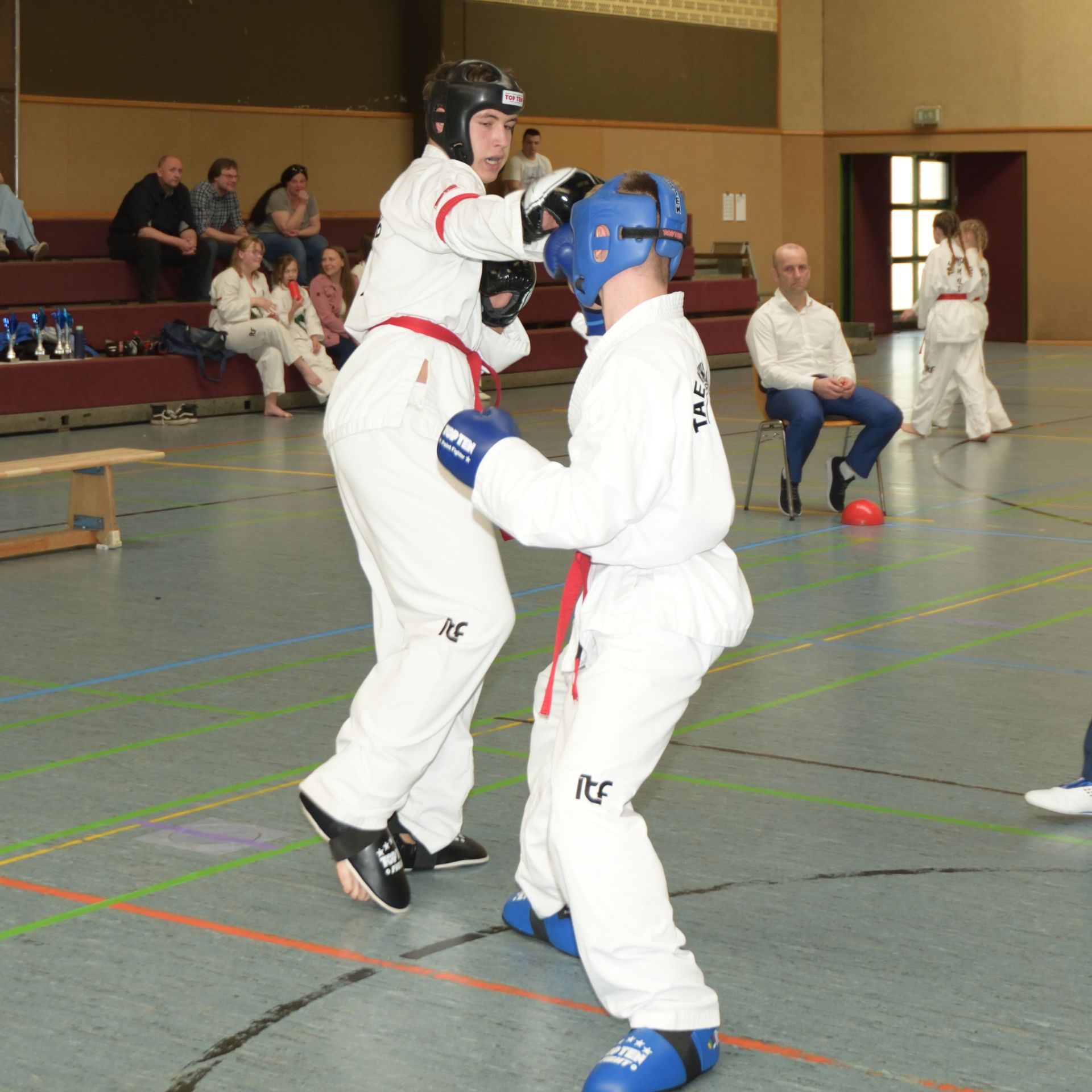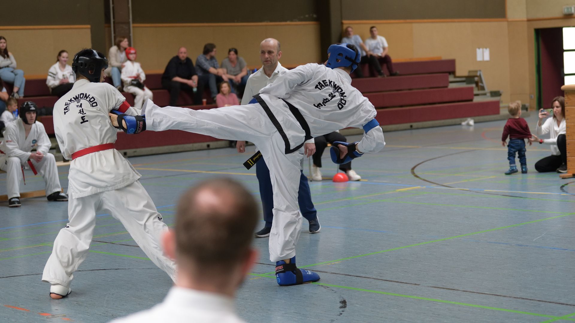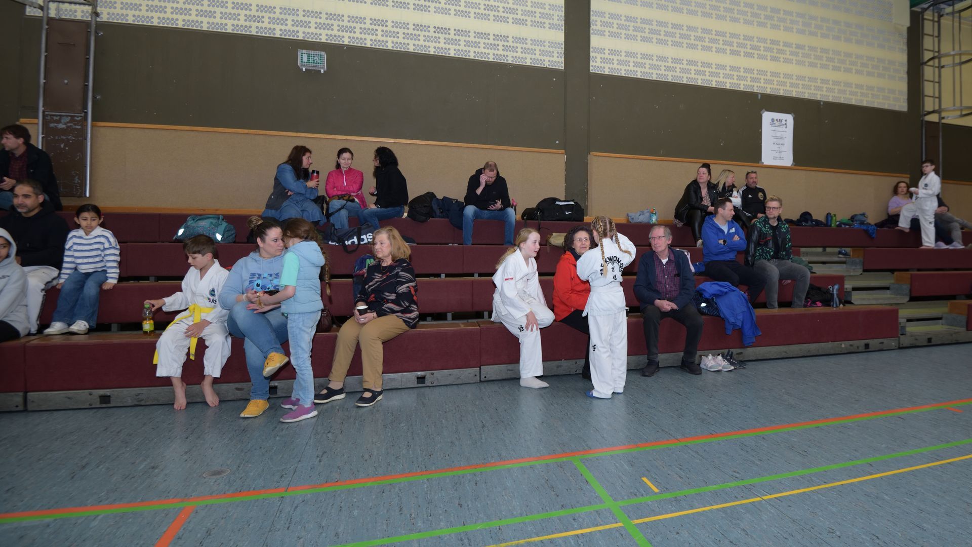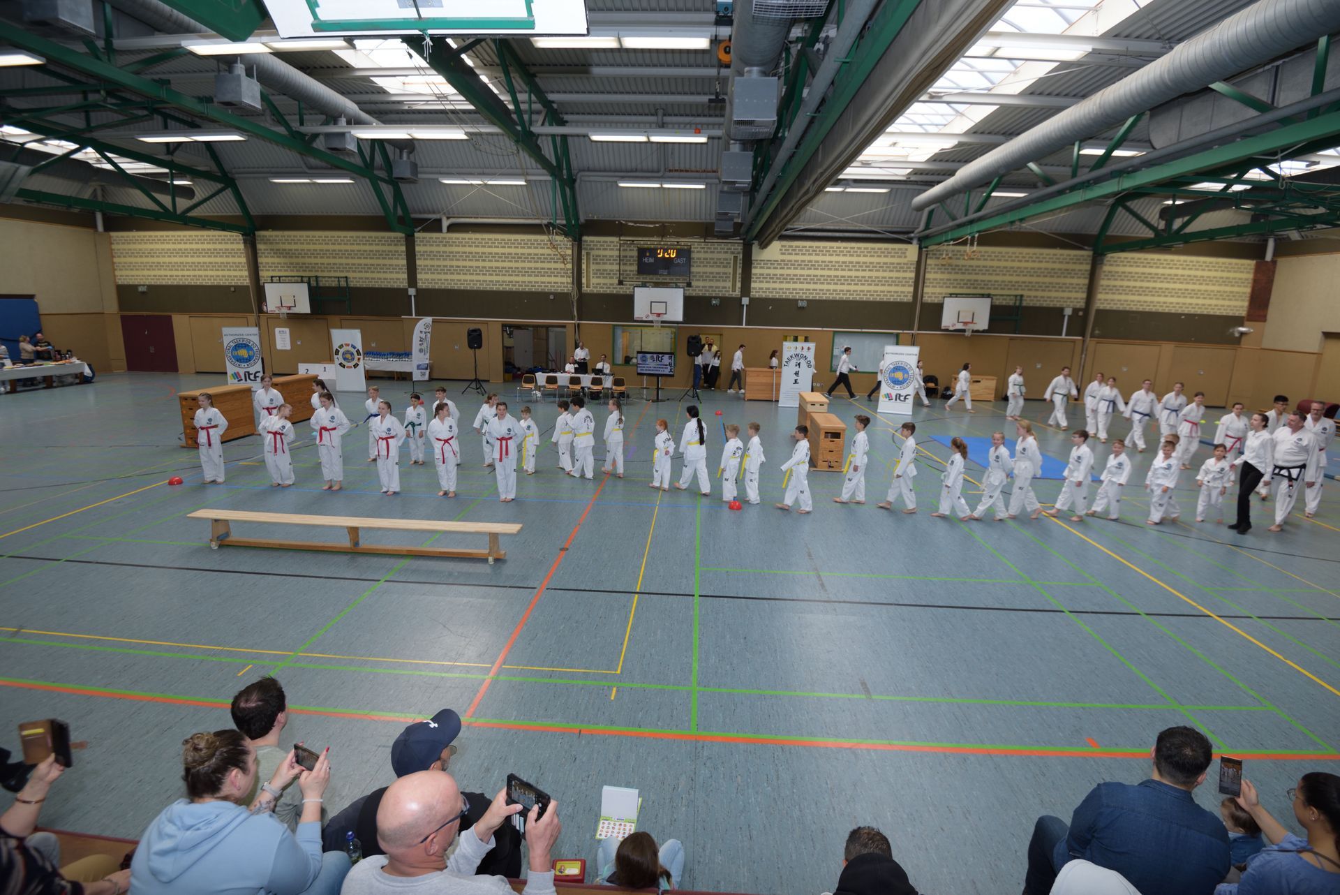 Dieses Mal starteten 56 Teilnehmer*innen im Alter von 6 bis über 50 Jahren in den Kategorien Tul (Formenlauf), Spezialtechnik und Freikampf (Matsogi). Zahlreiche Trainer*innen halfen zudem als Kampfrichter*innen, in der Kinder- und Wettkämpfer*innen-Betreuung. Auch ein paar freiwillige Eltern halfen mit Kuchenspenden oder dem Verkauf der Verpflegung aus. Schon mal ein herzliches Dankeschön dafür !