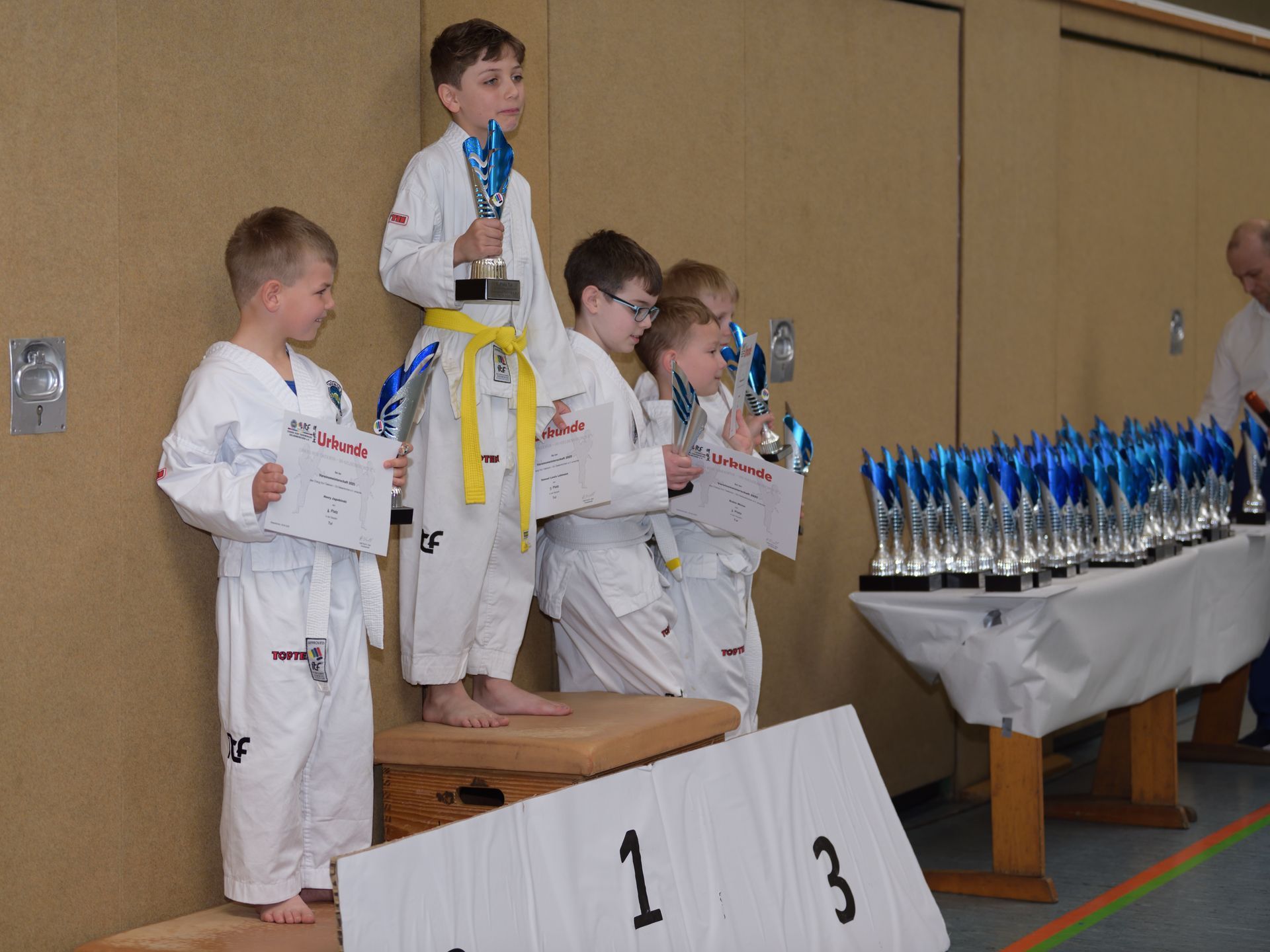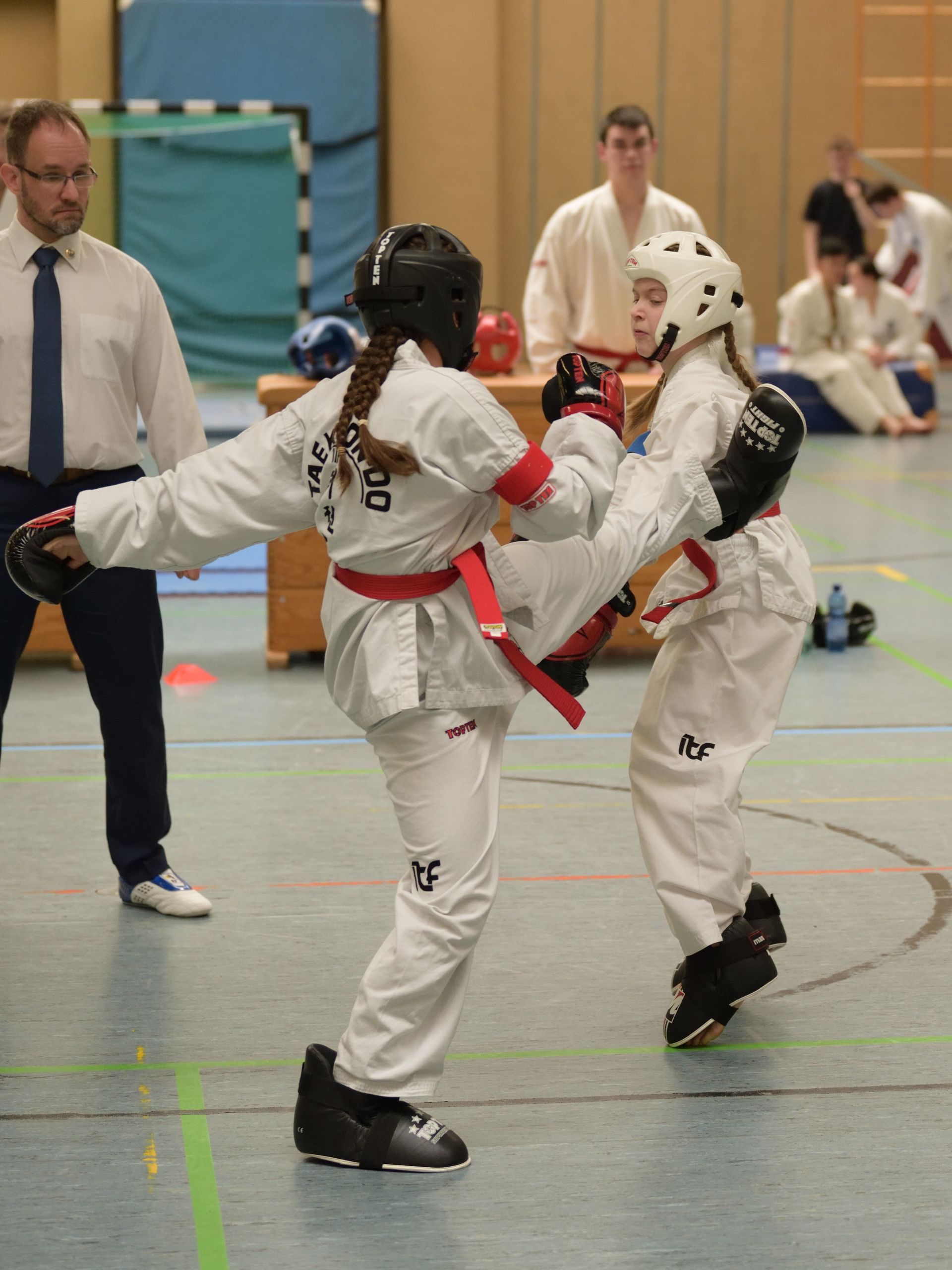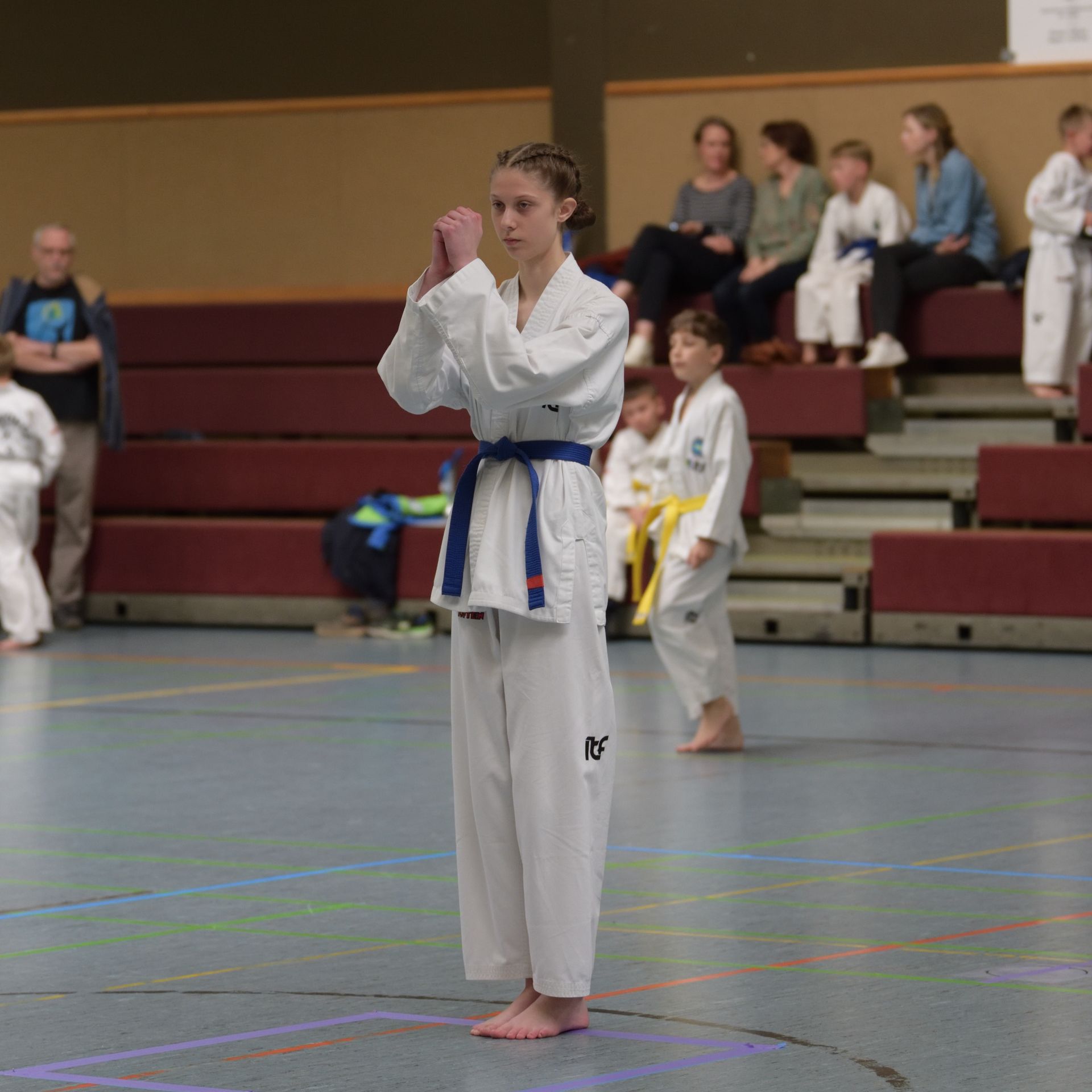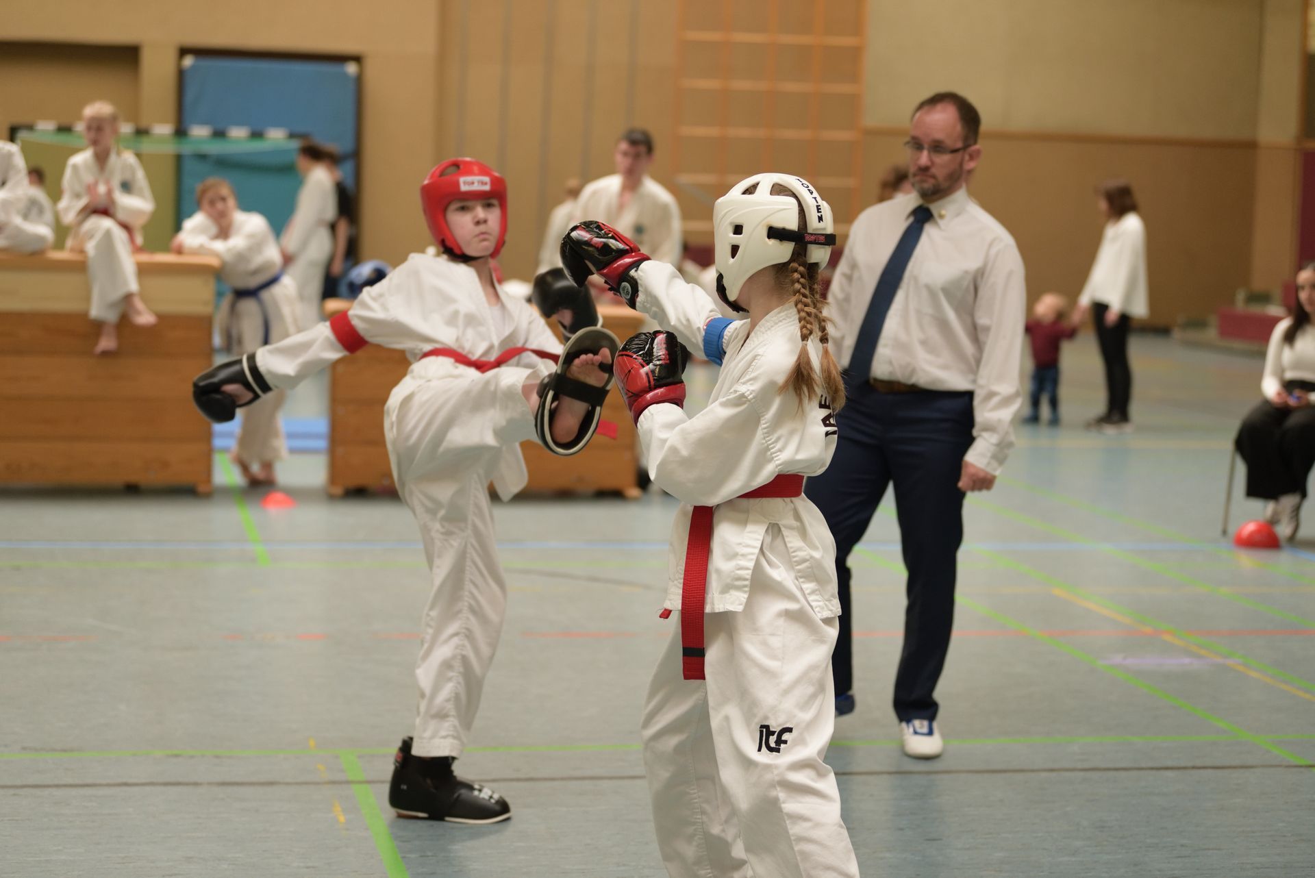 Dieses Mal starteten 56 Teilnehmer*innen im Alter von 6 bis über 50 Jahren in den Kategorien Tul (Formenlauf), Spezialtechnik und Freikampf (Matsogi). Zahlreiche Trainer*innen halfen zudem als Kampfrichter*innen, in der Kinder- und Wettkämpfer*innen-Betreuung. Auch ein paar freiwillige Eltern halfen mit Kuchenspenden oder dem Verkauf der Verpflegung aus. Schon mal ein herzliches Dankeschön dafür !