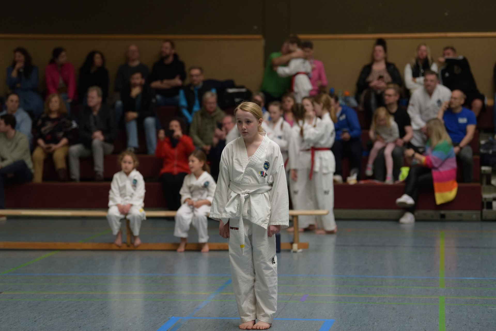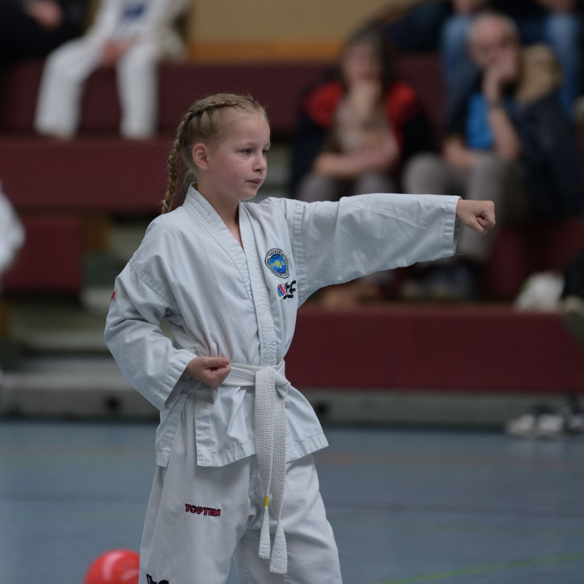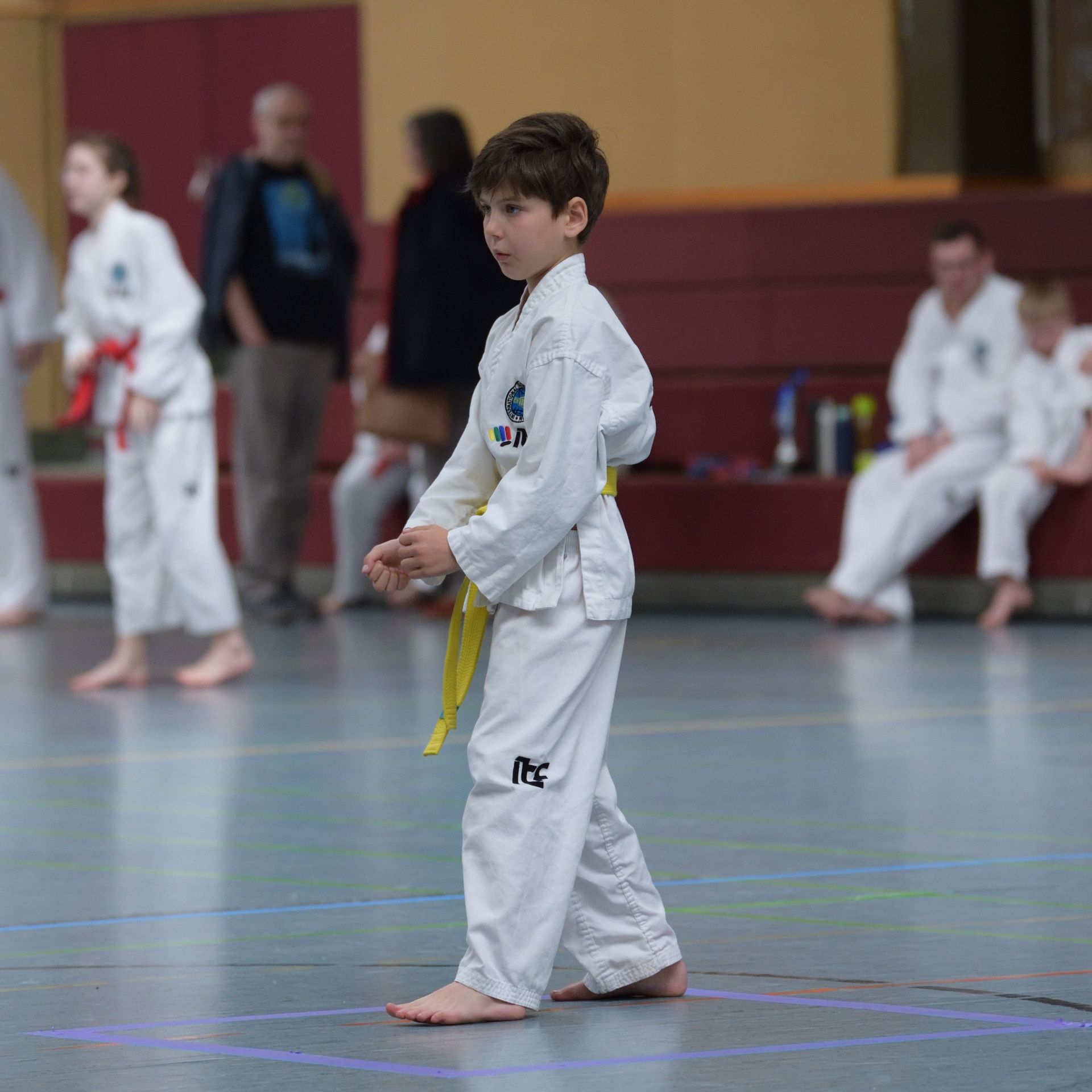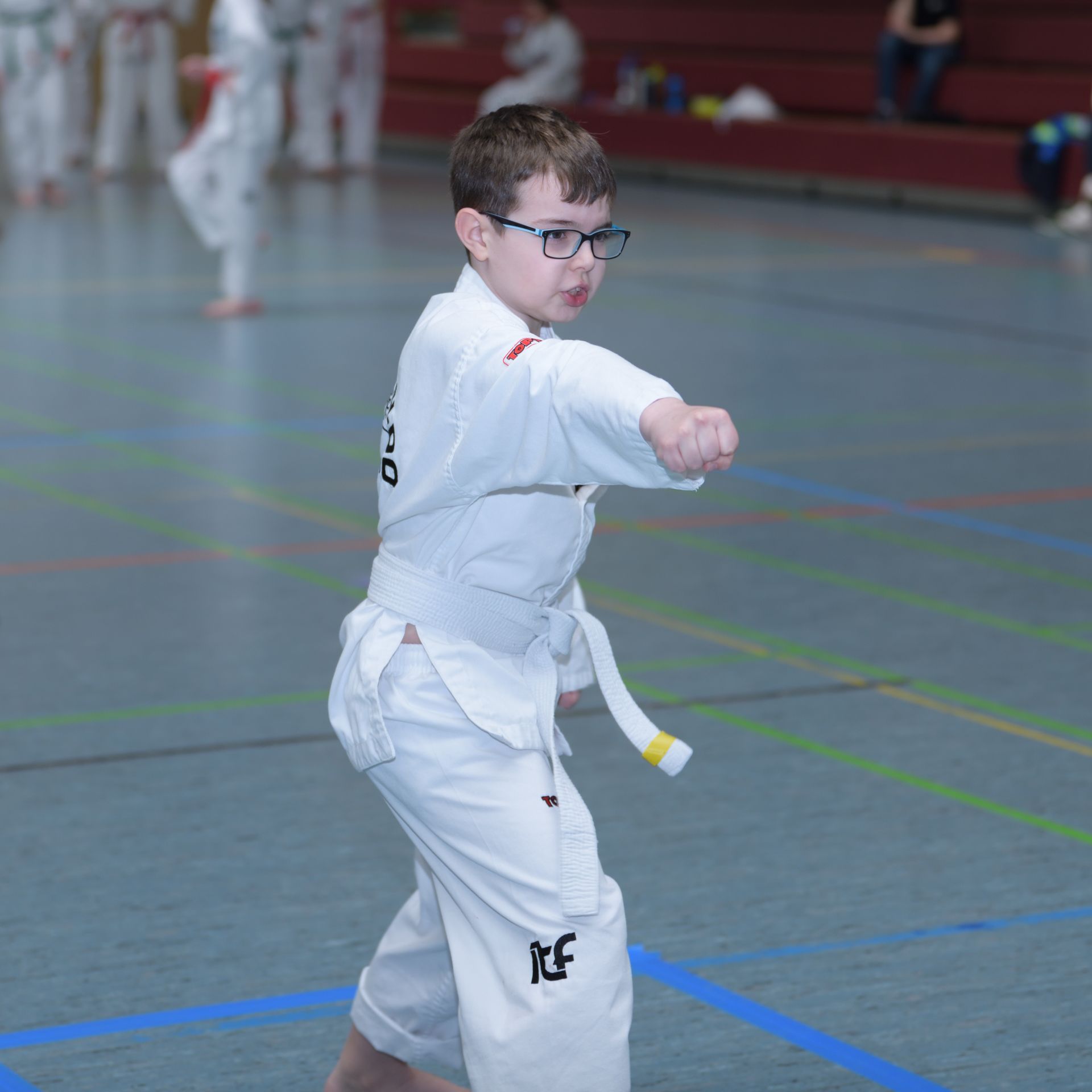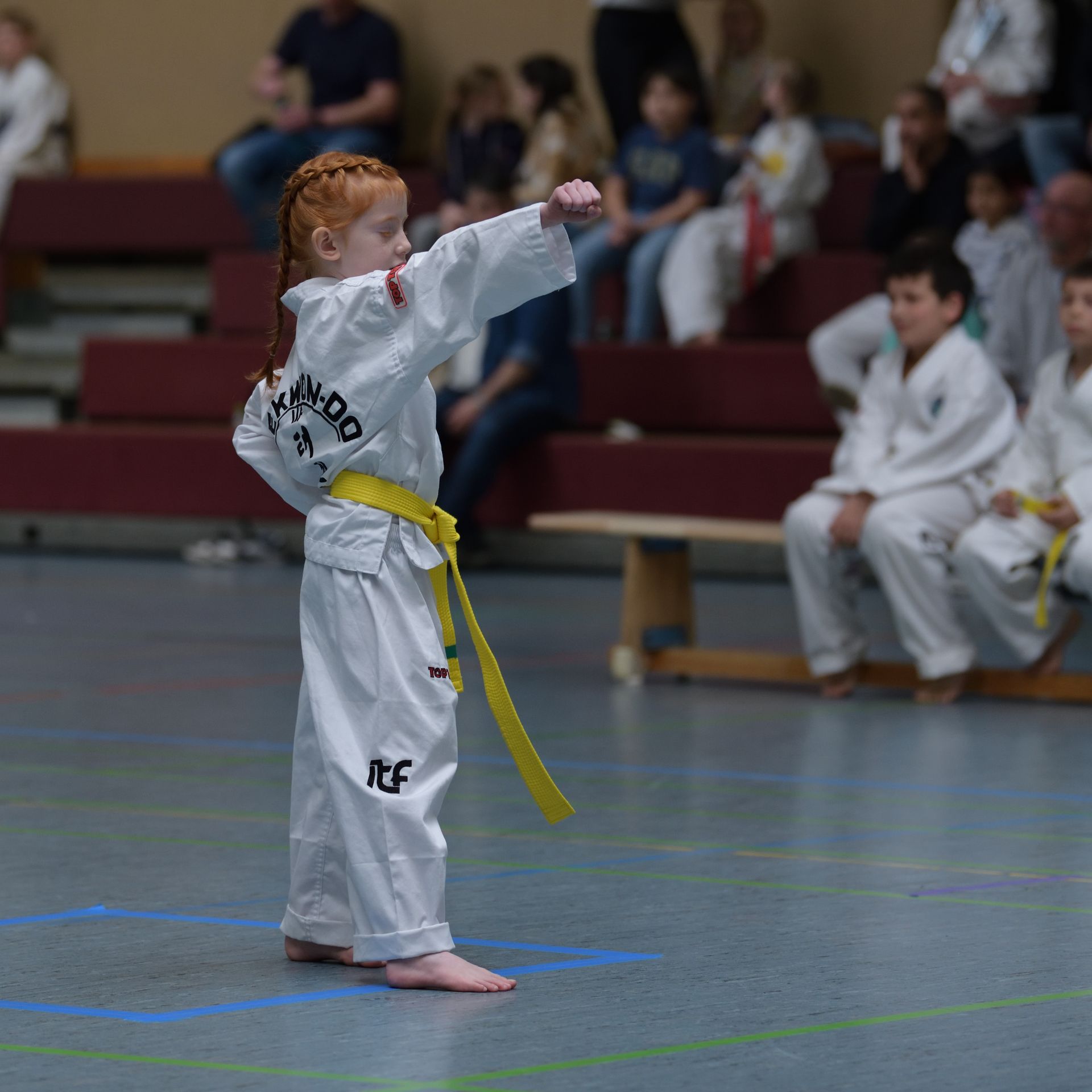 Nach gemeinsamem Angrüßen und kurzen Begrüßungsworten startete das Turnier in der Kategorie Formenlauf (Tul). Hier zeigten die Wettkämpfer*innen trotz mancher Nervösität gute Leistungen. Auch das Publikum, das größtenteils aus vielen Eltern, Großeltern, Geschwistern, Freunden und Bekannten bestand, sich von dem Können der Teilnehmer*innen überzeugen. Für viele der jüngeren Teilnehmer*innen war es zudem das erste Mal, bei dem sie unter "Wettkampfbedingungen" antraten.