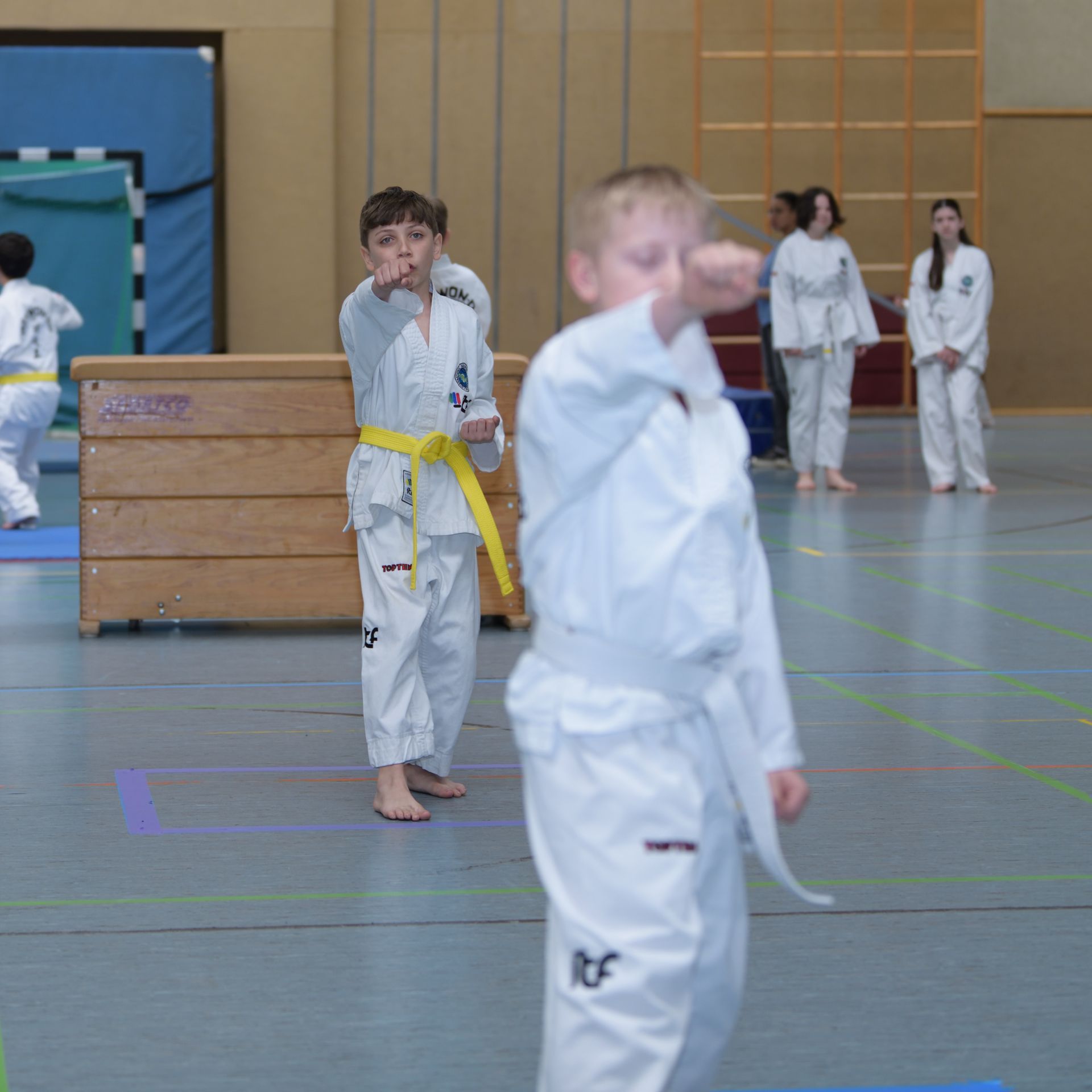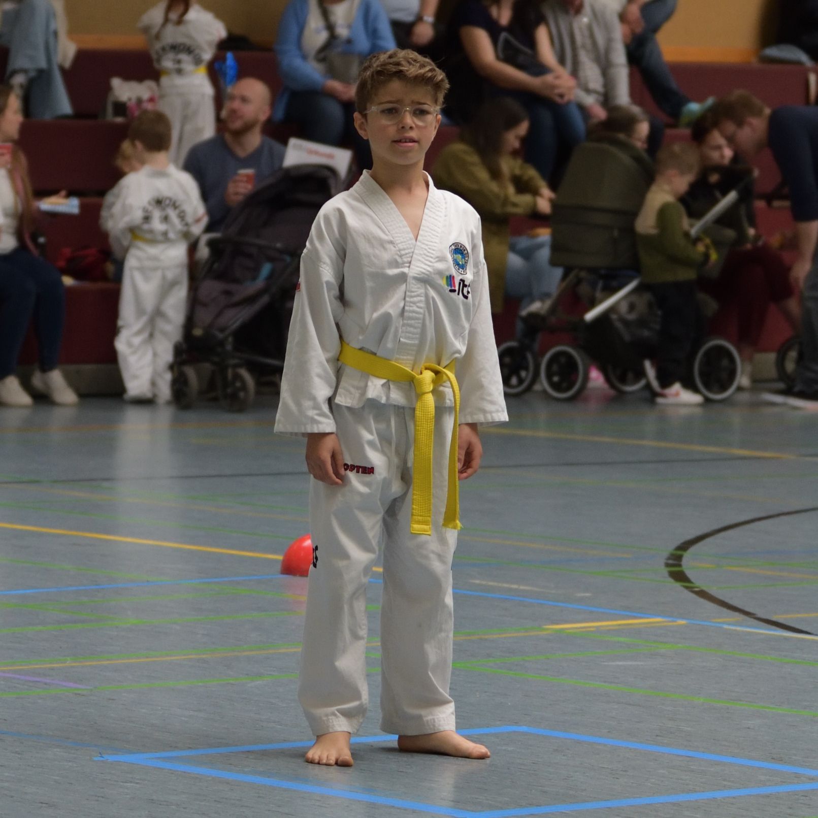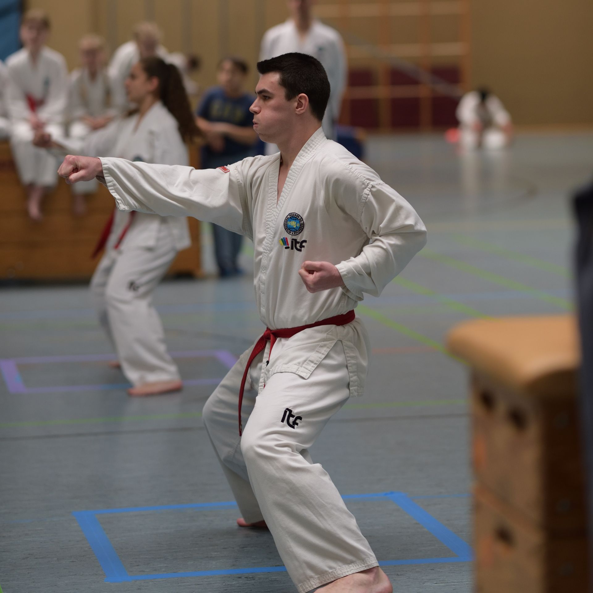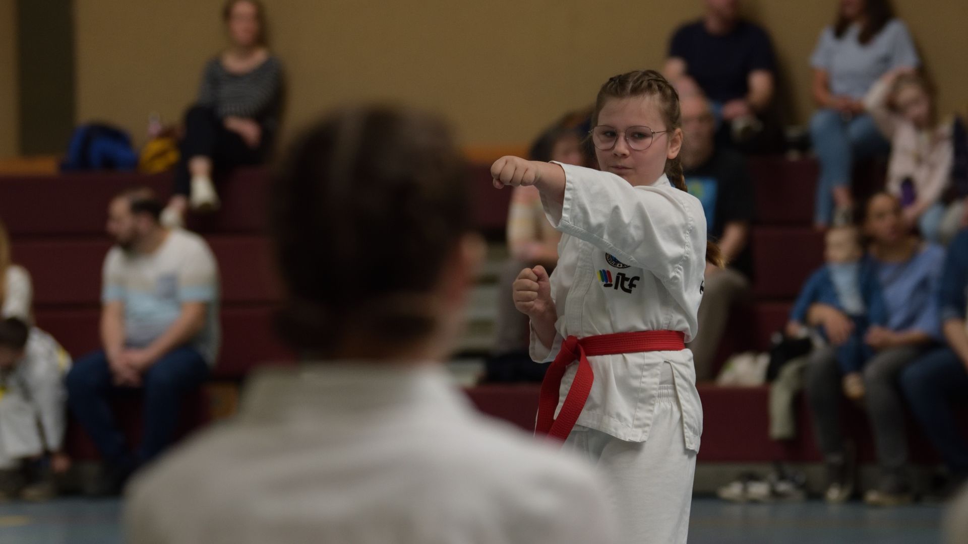 Nach gemeinsamem Angrüßen und kurzen Begrüßungsworten startete das Turnier in der Kategorie Formenlauf (Tul). Hier zeigten die Wettkämpfer*innen trotz mancher Nervösität gute Leistungen. Auch das Publikum, das größtenteils aus vielen Eltern, Großeltern, Geschwistern, Freunden und Bekannten bestand, sich von dem Können der Teilnehmer*innen überzeugen. Für viele der jüngeren Teilnehmer*innen war es zudem das erste Mal, bei dem sie unter "Wettkampfbedingungen" antraten.