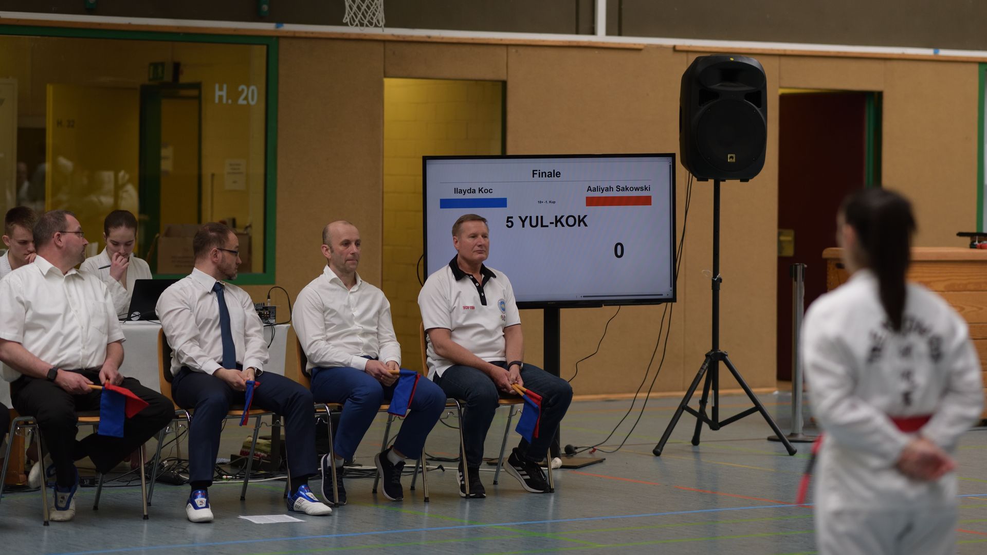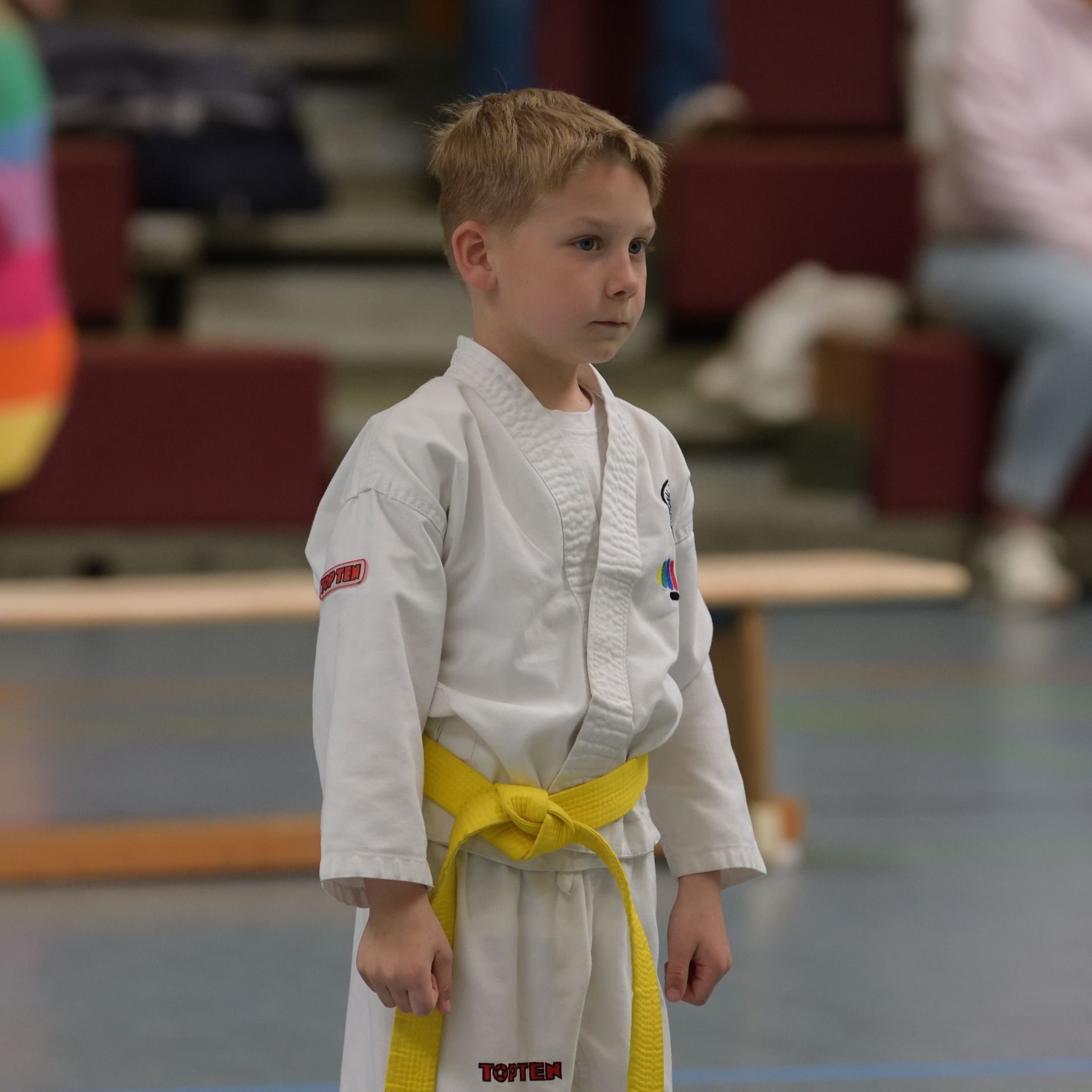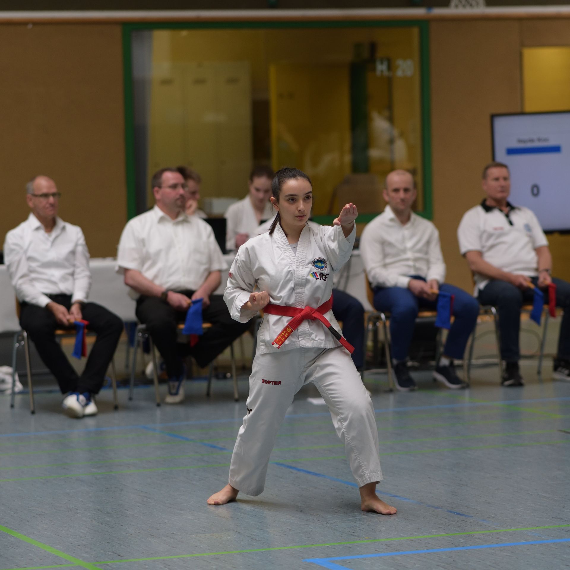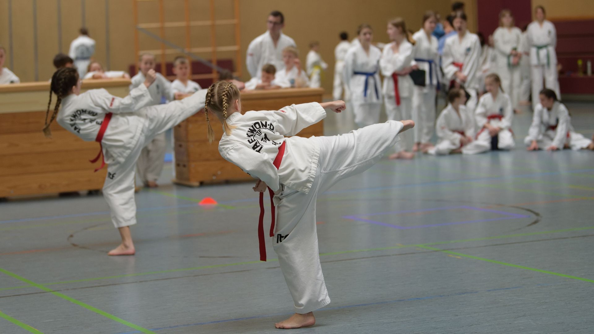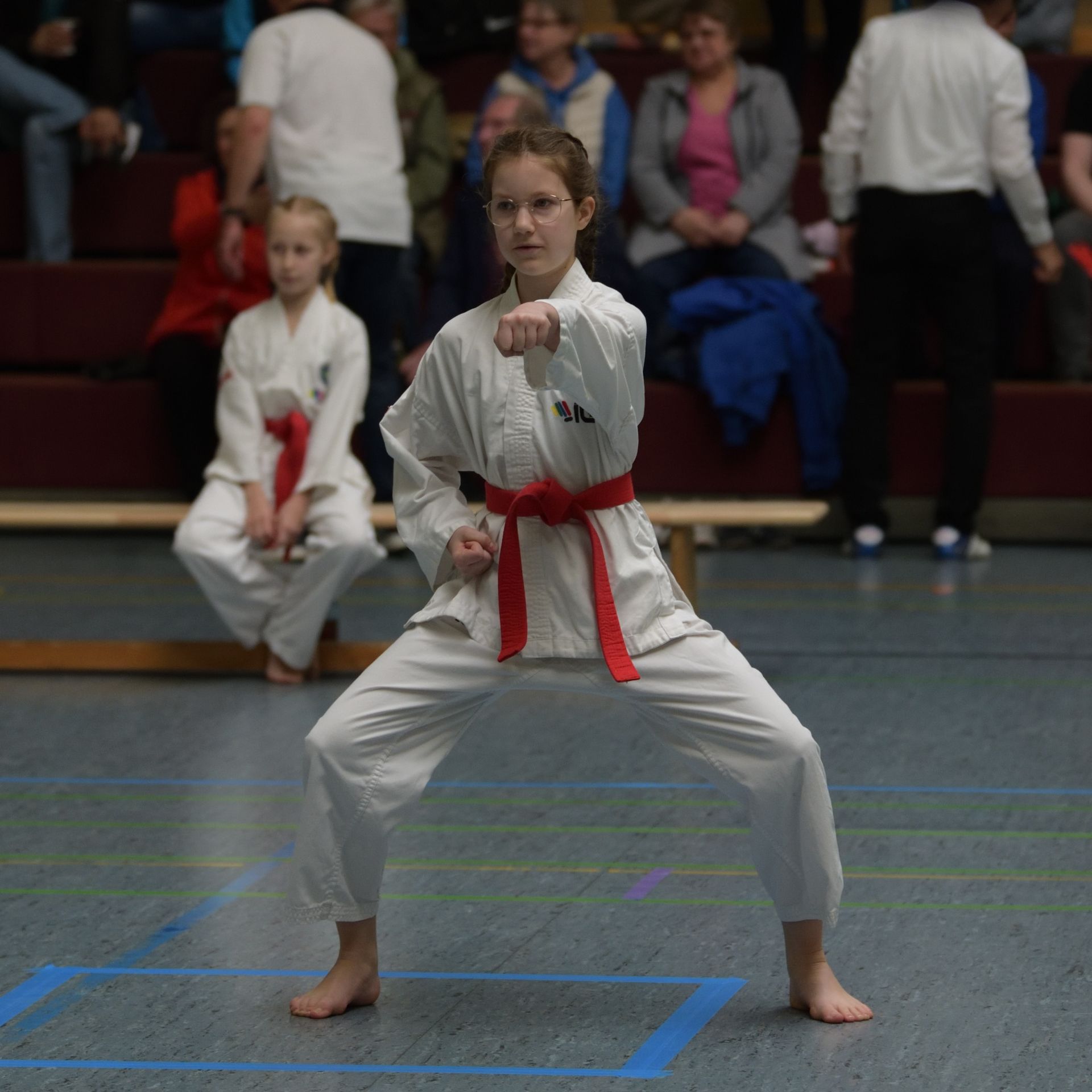 Nach gemeinsamem Angrüßen und kurzen Begrüßungsworten startete das Turnier in der Kategorie Formenlauf (Tul). Hier zeigten die Wettkämpfer*innen trotz mancher Nervösität gute Leistungen. Auch das Publikum, das größtenteils aus vielen Eltern, Großeltern, Geschwistern, Freunden und Bekannten bestand, sich von dem Können der Teilnehmer*innen überzeugen. Für viele der jüngeren Teilnehmer*innen war es zudem das erste Mal, bei dem sie unter "Wettkampfbedingungen" antraten.
