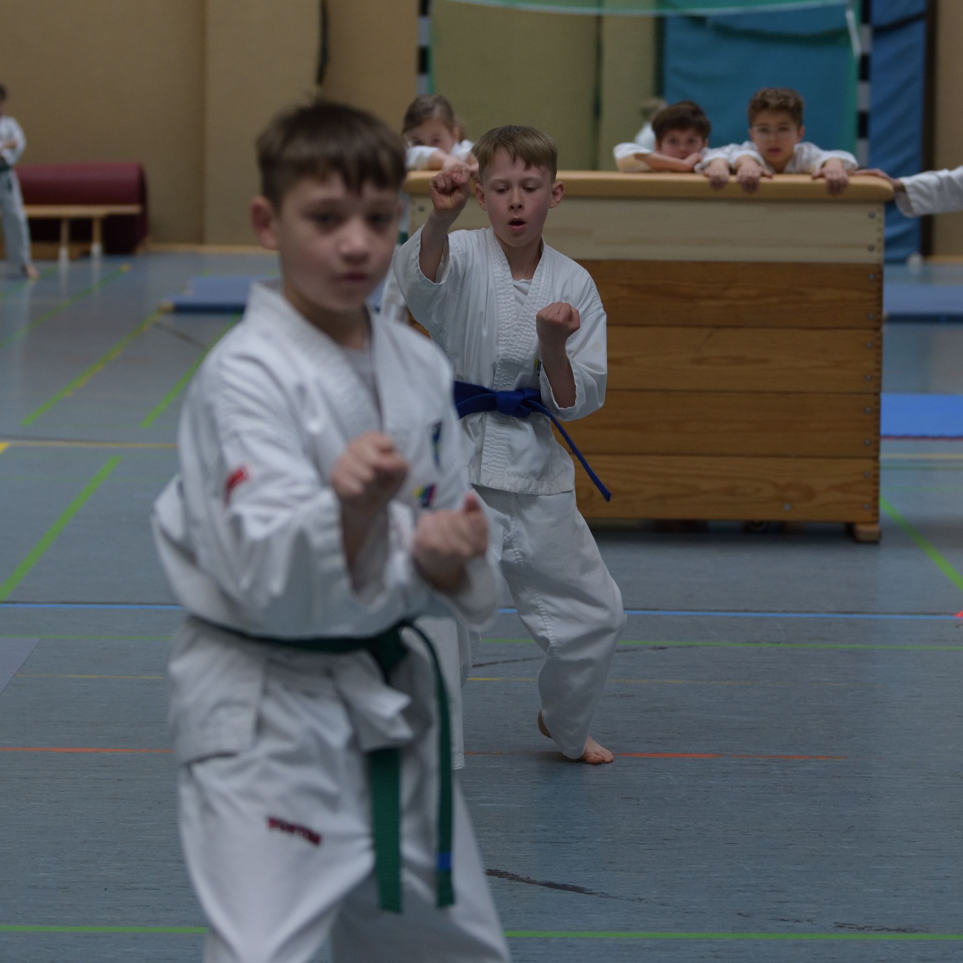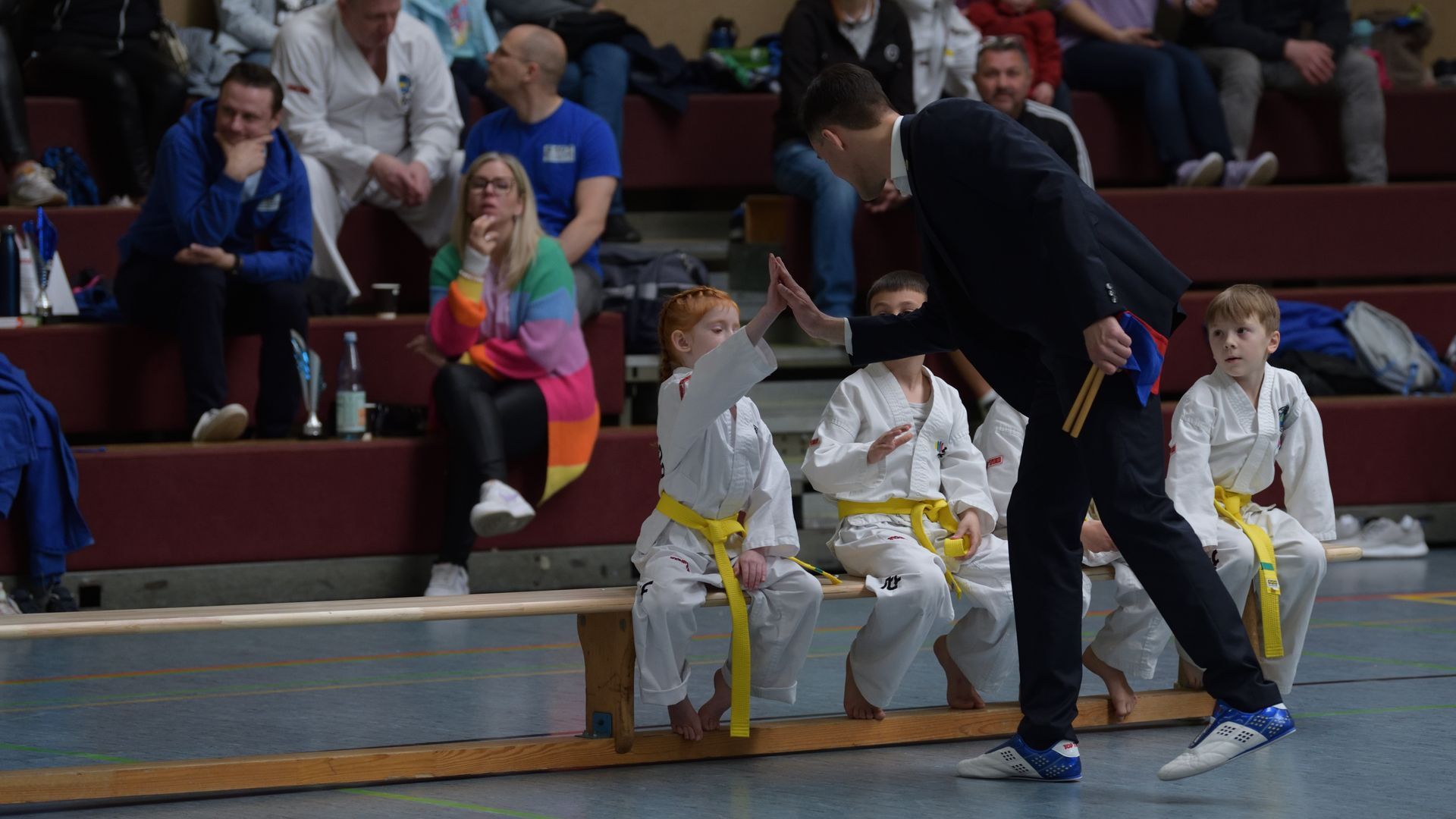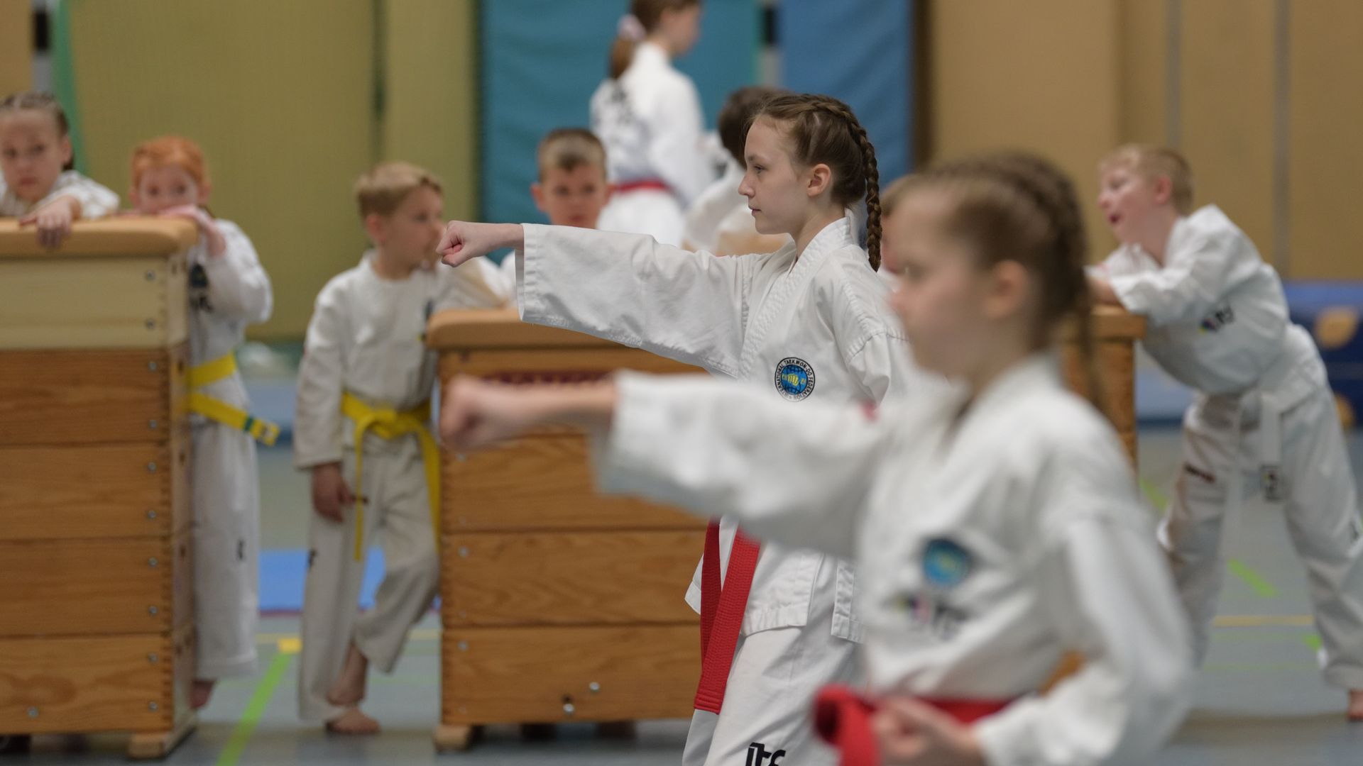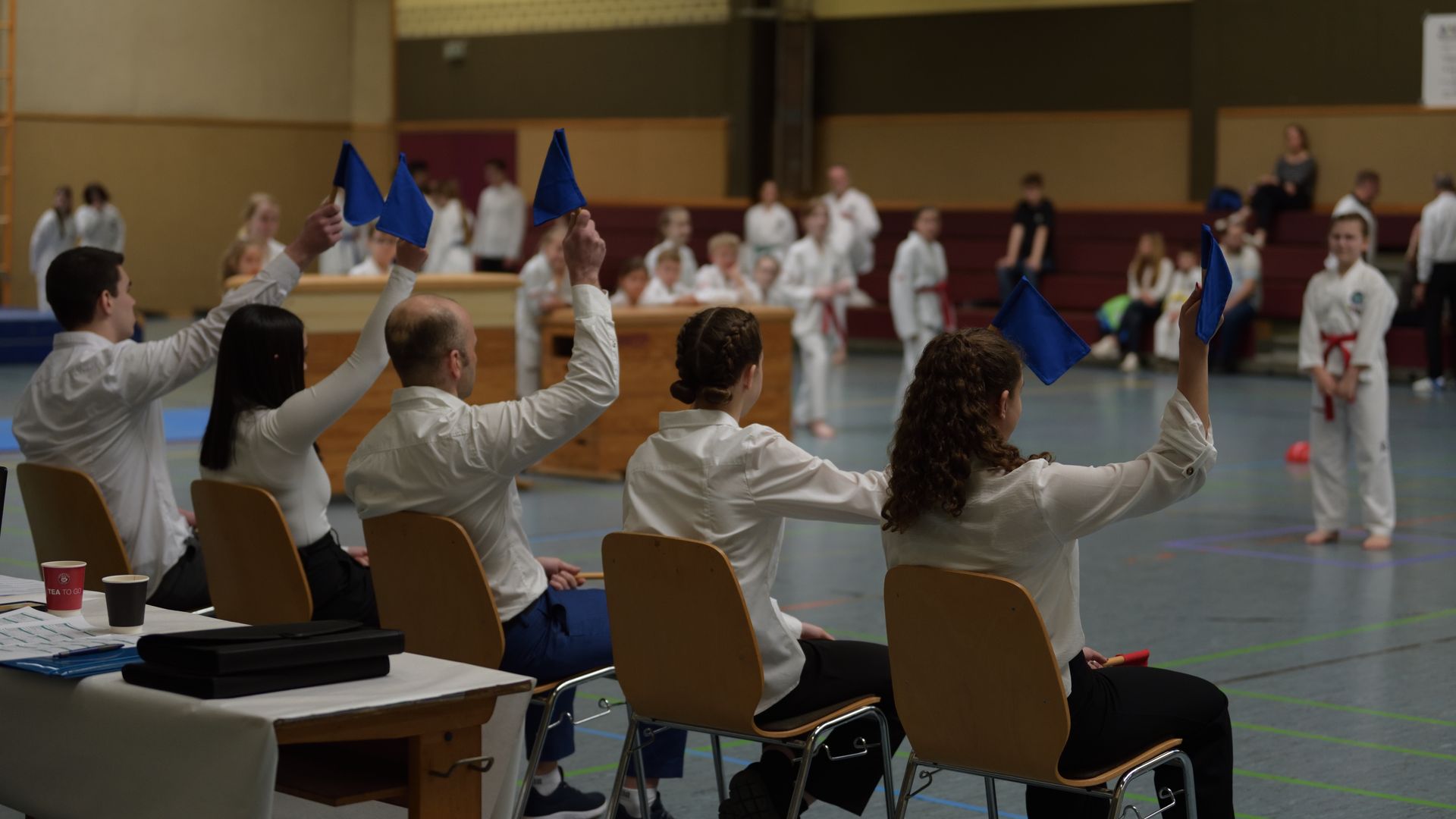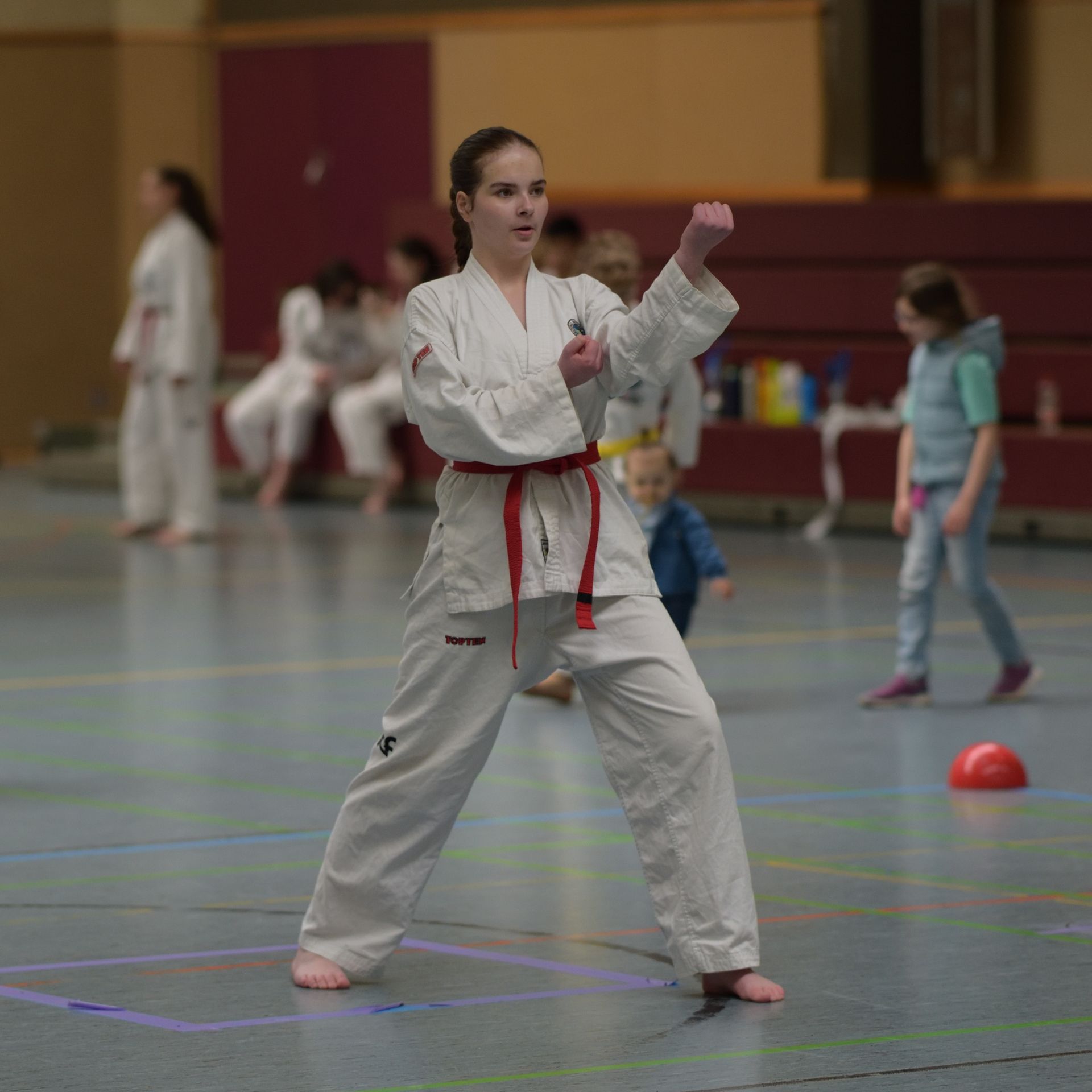 Nach gemeinsamem Angrüßen und kurzen Begrüßungsworten startete das Turnier in der Kategorie Formenlauf (Tul). Hier zeigten die Wettkämpfer*innen trotz mancher Nervösität gute Leistungen. Auch das Publikum, das größtenteils aus vielen Eltern, Großeltern, Geschwistern, Freunden und Bekannten bestand, sich von dem Können der Teilnehmer*innen überzeugen. Für viele der jüngeren Teilnehmer*innen war es zudem das erste Mal, bei dem sie unter "Wettkampfbedingungen" antraten.