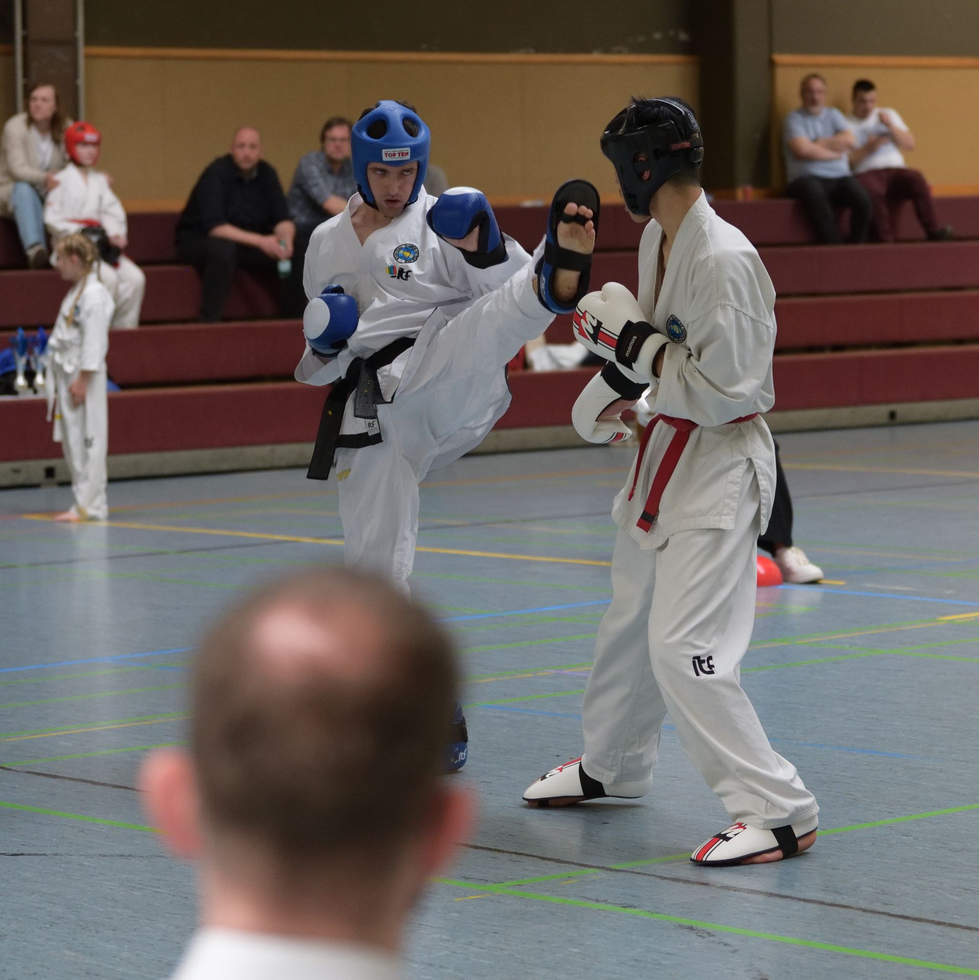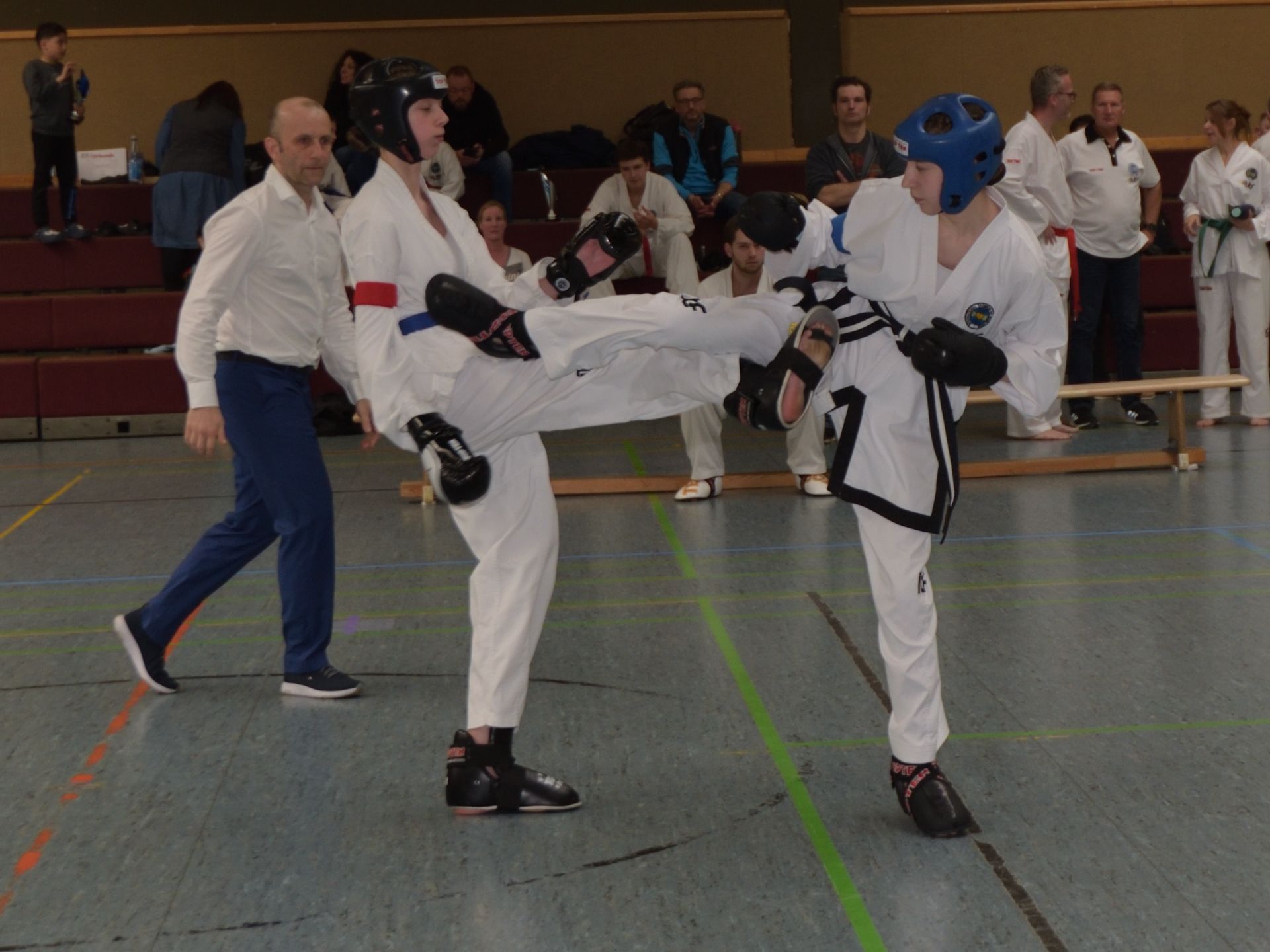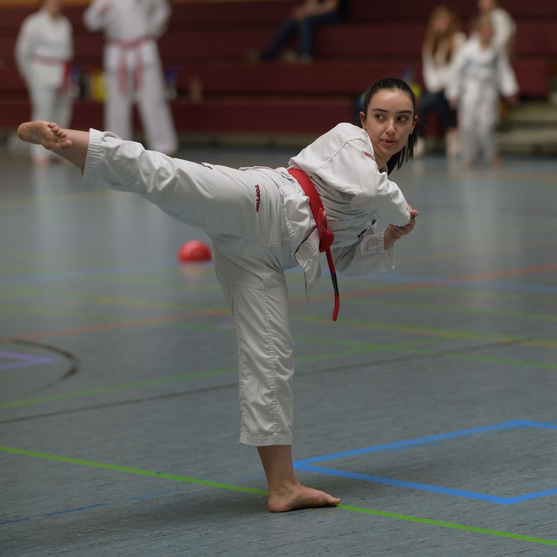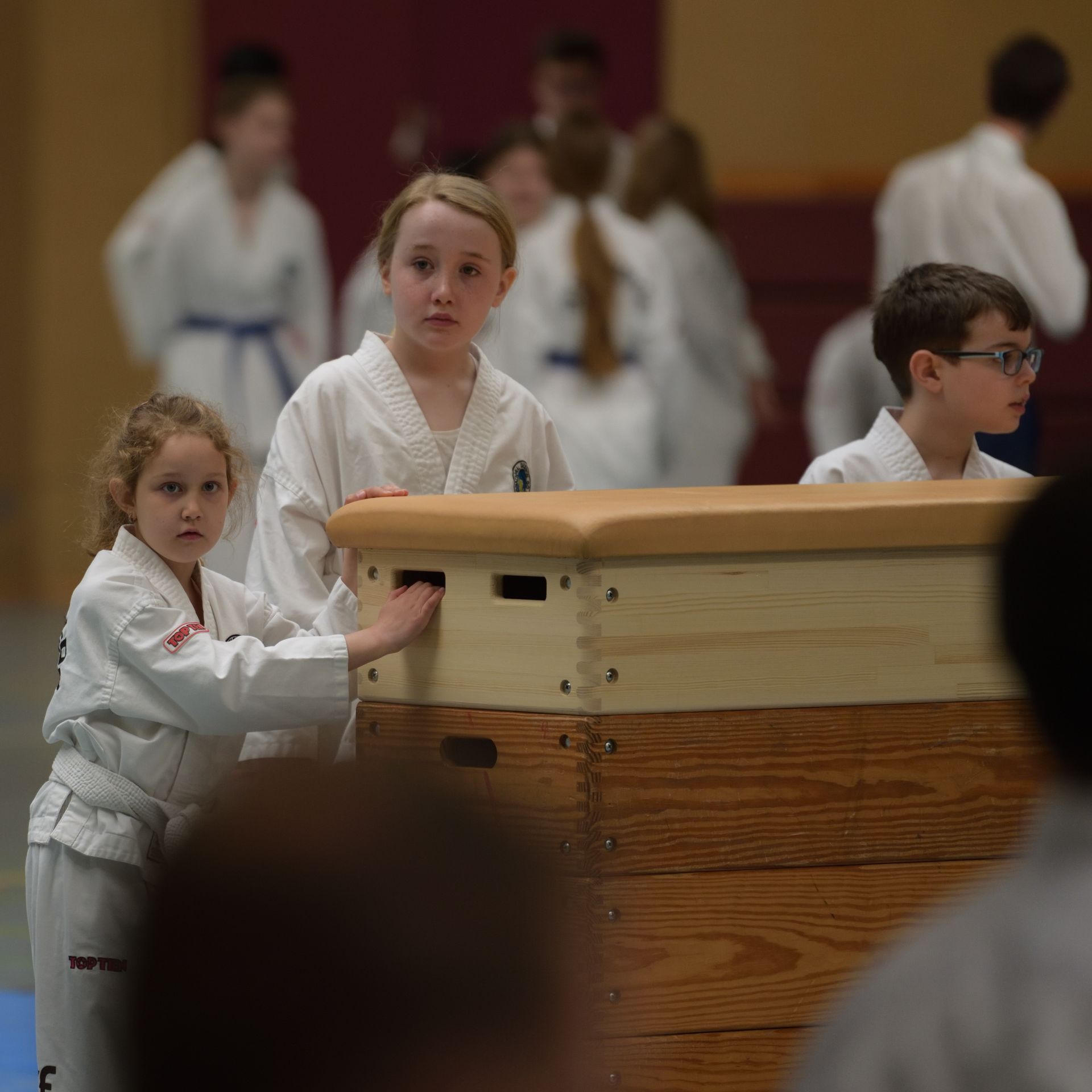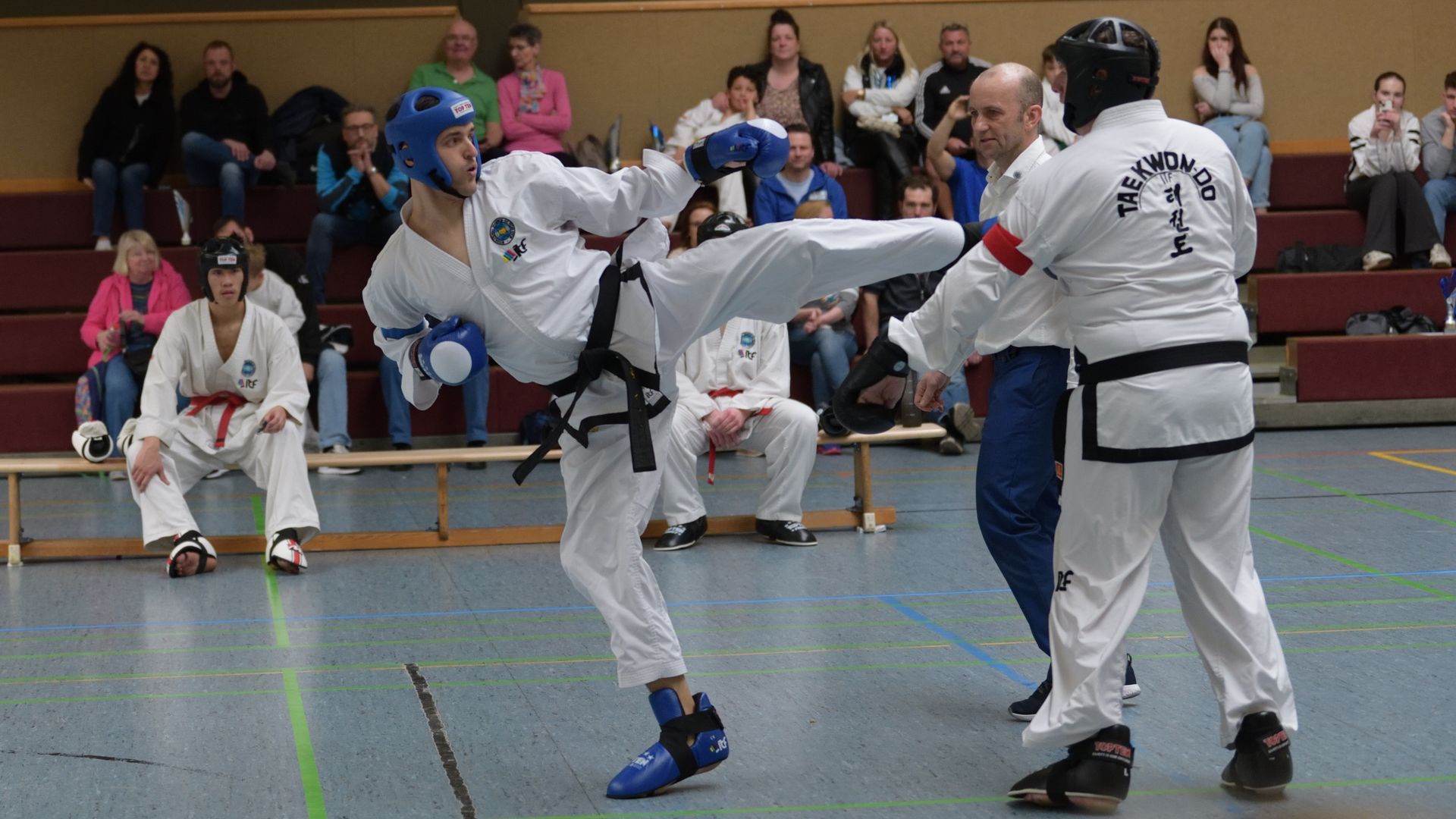 Die Spezialtechnik-Wettbewerbe sorgten wieder für Staunen beim Publikum. Während die jüngeren, niedrig graduierten Kinder sich im Hochsprung über ein Gummiseil maßen, mussten die älteren, fortgeschritteneren Sportler*innen mit dem Fuß ein von Runde zu Runde höher hängendes Brett treffen und möglichst umklappen. Die erreichten Höhen beeindruckten das Publikum. Ein paar der fortgeschritteneren Herren konnten sich gar fast an den internationalen Höhenstandard von über 2,40 m herantasten.
