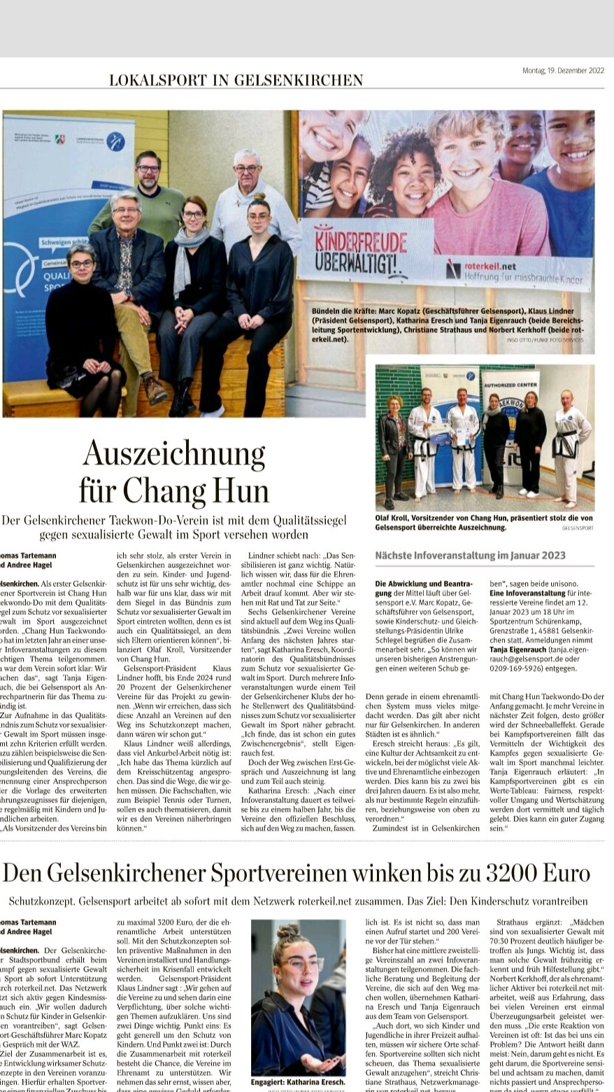 Am Samstag, den 20.09.2025, fand mit dem ITF-German Cup ein Turnier in Thale statt. Aus Gelsenkirchen machte sich eine Gruppe von 29 Leuten des Chang Hun Taekwon-Do Gelsenkirchen e. V., bestehend aus Sportler*innen, Coaches, Kampfrichtern, Geschwistern und Eltern in den Harz nach Sachsen-Anhalt auf. Die Anreise erfolgte bereits am Freitag in der tollen Unterkunft, in der alle ihren Platz hatten. So konnte der Abend bereits in geselliger Runde bei einem gemeinschaftlichen Grillen verbracht werden. Am Turniertag nahmen 16 Sportler*innen des Chang Hun Taekwon-Do Gelsenkirchen e. V. in verschiedenen Kategorien teil. Alle starteten in der Kategorie Tul (Formenlauf). Paulina, Svea und Emily starteten zudem wieder beim Spezial-Bruchtest. Auch Moritz nahm erstmals in dieser Disziplin teil. Als Einziger startete Niklas zudem in der Kategorie Matsogi (Freikampf). Bei t ollem Wetter außerhalb der Halle konnten wieder tolle Ergebnisse erzielt werden .Unsere Sportler*innen konnten folgende Platzierungen erreichen: Benjamin Gäth: 3. Platz Tul Aaliyah Sakowski: 3. Platz Tul Tim Jazbec: 1. Platz Tul Emily Schmidt: 2. Platz Spezial-Bruchtest, 3. Platz Tul Svea Miller: 1. Platz Spezial Bruchtest, 5. Platz Tul Amelie Bomm: 3. Platz Tul Lina Wilczewski: 3. Platz Tul Emma Wolf: 2. Platz Tul Luisa Wolf: 5. Platz Tul Heiko Heermann: 3. Platz Tul Paulina Heermann: 1. Platz Tul, 3. Platz Spezial-Bruchtest Moritz Heermann: 5. Platz Tul Dr. Sebastian Blahout: 3. Platz Tul Meret Menzel: 3. Platz Tul David Klunt: 3. Platz Tul Niklas Geisler: 1. Platz Tul, 5. Platz Kampf Mit diesen tollen Ergebnissen landete unser Verein damit auf einem hervorragenden Platz 6 der Gesamt-Ergebnisliste. Wir gratulieren unsern Sportler*nnen zu Ihren Erfolgen und freuen uns über diese Ergebnisse. Der Samstag klang dann nach einem kleinen Ausflug in Thale mit dem Besuch der Sommerrodelbahn und einem Gruppenspaziergang bei einem gemeinsamen Essen bei einem griechischen Restaurant in Thale aus. Zudem konnte auch noch gemeinschaftlich in den Geburtstag von Aaliyah gefeiert werden, die am Sonntag 20 Jahre alt wurde. Alles in allem war es ein tolles Wochenende in einer tollen Gemeinschaft. Vorstand, Trainer und Coaches des CHTKDG