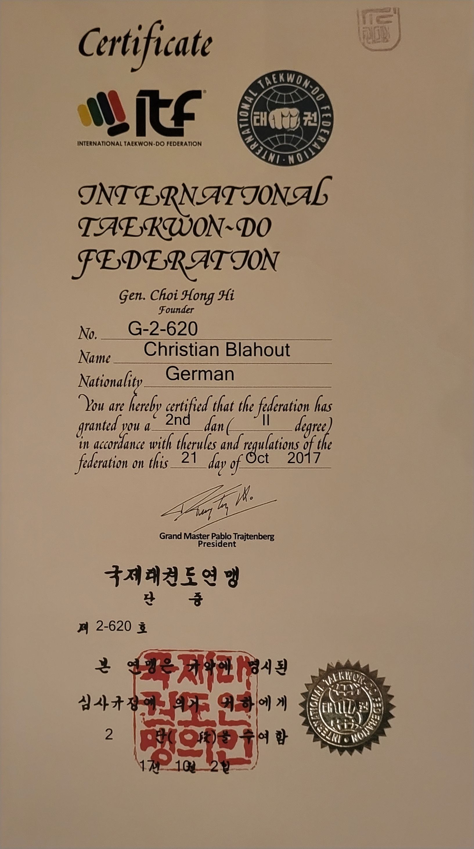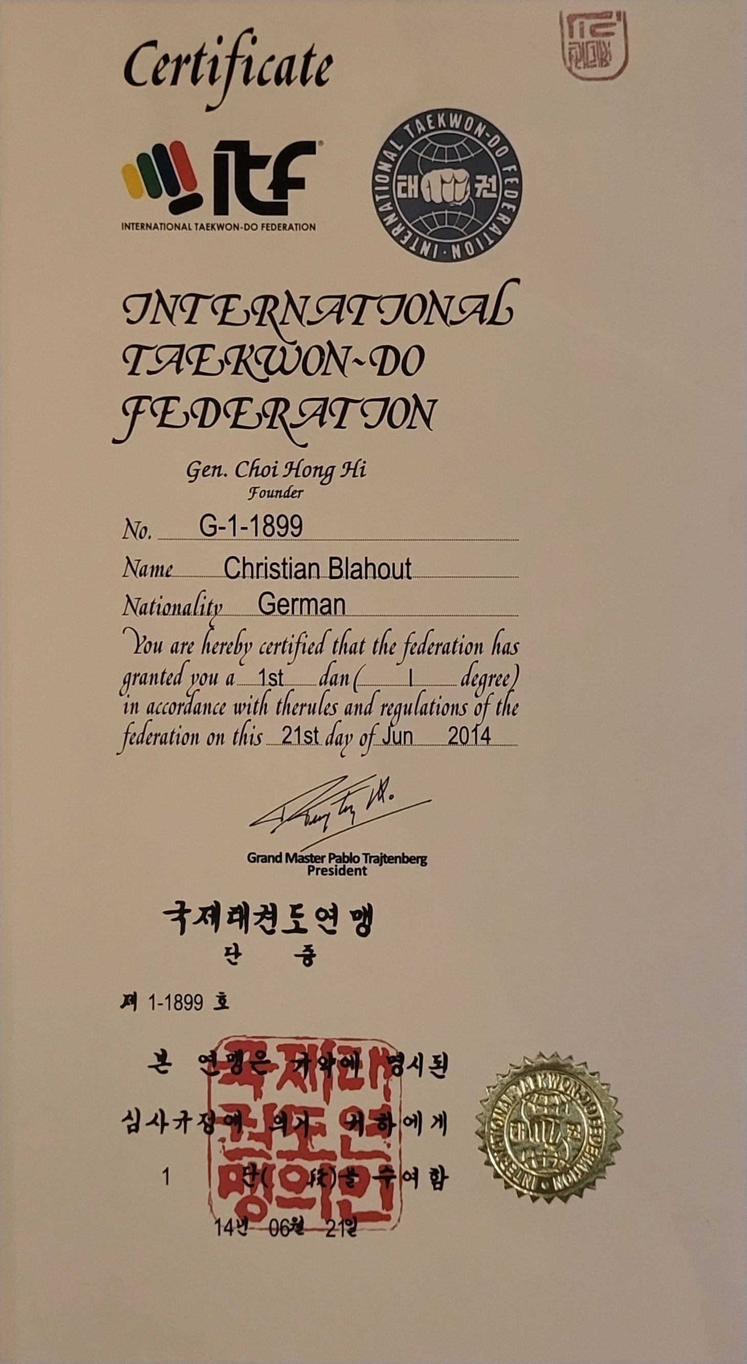 Taekwon-Do seit seinem sechsten Lebensjahr im Jahr