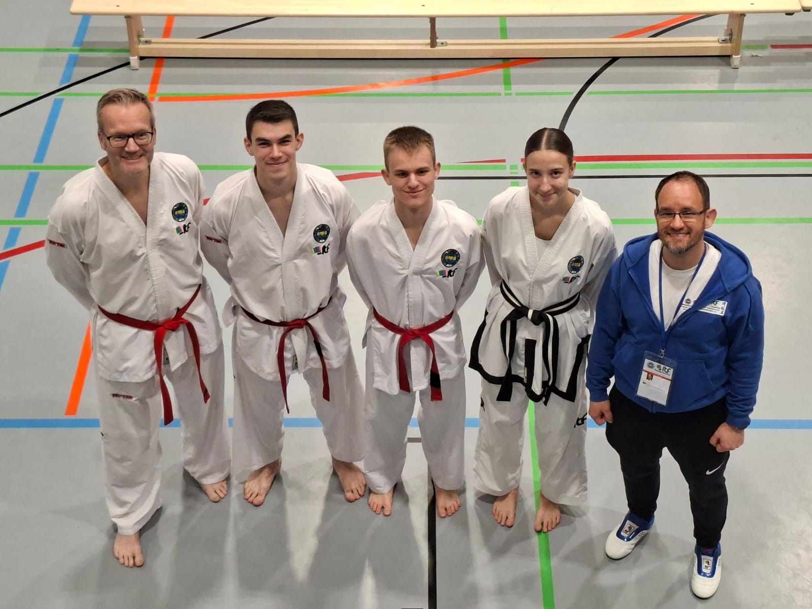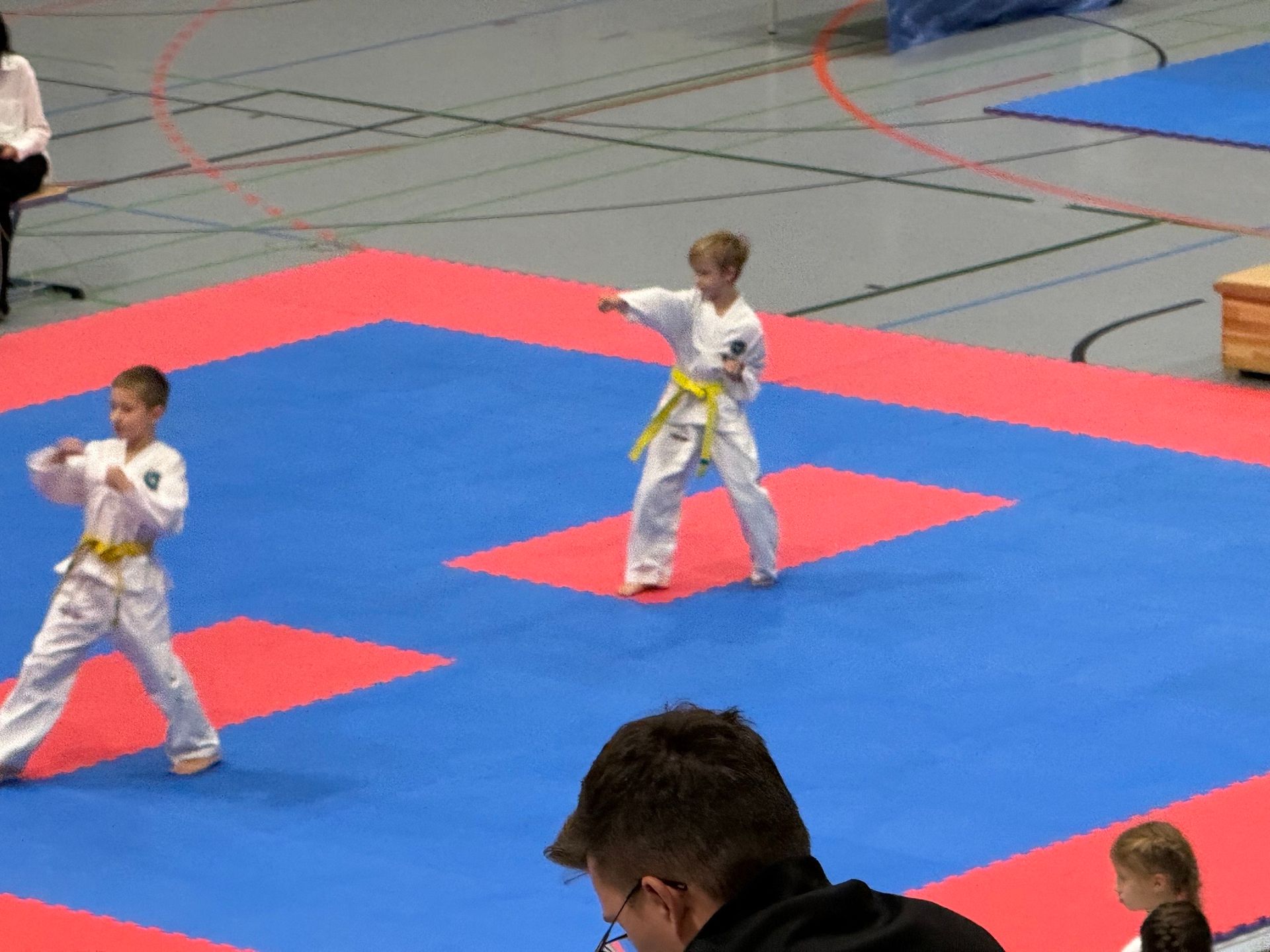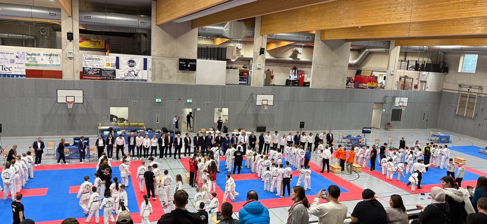 Am 05.04.2025 fand in der Turnhalle der Gesamtschule Horst bereits zum dritten Mal die jährliche Vereinsmeisterschaft des Chang Hun Taekwon-Do Gelsenkirchen e. V. statt. Dieses Mal starteten 56 Teilnehmer*innen im Alter von 6 bis über 50 Jahren in den Kategorien Tul (Formenlauf), Spezialtechnik und Freikampf (Matsogi). Zahlreiche Trainer*innen halfen zudem als Kampfrichter*innen, in der Kinder- und Wettkämpfer*innen-Betreuung. Auch ein paar freiwillige Eltern halfen mit Kuchenspenden oder dem Verkauf der Verpflegung aus. Schon mal ein herzliches Dankeschön dafür ! Nach gemeinsamem Angrüßen und kurzen Begrüßungsworten startete das Turnier in der Kategorie Formenlauf (Tul). Hier zeigten die Wettkämpfer*innen trotz mancher Nervösität gute Leistungen. Auch das Publikum, das größtenteils aus vielen Eltern, Großeltern, Geschwistern, Freunden und Bekannten bestand, sich von dem Können der Teilnehmer*innen überzeugen. Für viele der jüngeren Teilnehmer*innen war es zudem das erste Mal, bei dem sie unter "Wettkampfbedingungen" antraten. In einer Vorführung wurde zudem die Bandbreite des Taekwon-Do gezeigt. Es wurden Tul, Hand- und Fußtechniken sowie Selbstverteidigungstechniken gezeigt. Drei Sportlerinnen hatten zudem eine choreografierte Team-Tul einstudiert. Die Spezialtechnik-Wettbewerbe sorgten wieder für Staunen beim Publikum. Während die jüngeren, niedrig graduierten Kinder sich im Hochsprung über ein Gummiseil maßen, mussten die älteren, fortgeschritteneren Sportler*innen mit dem Fuß ein von Runde zu Runde höher hängendes Brett treffen und möglichst umklappen. Die erreichten Höhen beeindruckten das Publikum. Ein paar der fortgeschritteneren Herren konnten sich gar fast an den internationalen Höhenstandard von über 2,40 m herantasten. Ach diesmal wurden wieder Freikämpfe durchgeführt. Auch dieses Jahr gab es dabei die ein oder andere Überraschung, was die Ergebnisse betrifft. Glücklicherweise kam es auch nur zu geringen Verletzungen, da die Kämpfe überwiegend sehr fair ausgeführt wurden. Ein weiteres kleines Highlight war die Ehrung von Jubilaren des CHTKDG durch den Vorstand im Rahmen dieser Veranstaltung. Unser Vorstandsvorsitzender Olaf Kroll würdigte insbesondere die Brüder Dr. Sebstian Blahout und Christian Blahout, die trotz anfänglicher Widerstände dem Verein seit mittlerweile 25 Jahren die Treue halten. Weitere Jubilare mit 10jähriger Vereinszugehörigkeit, die geehrt wurden waren zudem: Hans-Joachim Sabottka, Gabriel Sabottka, Kai Schmidt, Emily Schmidt, Nina Schmitz, Anton Pham und Tim Jazbec. Allen Jubilaren gratulieren wir nochmals ganz herzlich und freuen uns schon auf eine rege Teilnahme an der jährlichen Vereinsmeisterschaft im nächsten Jahr !