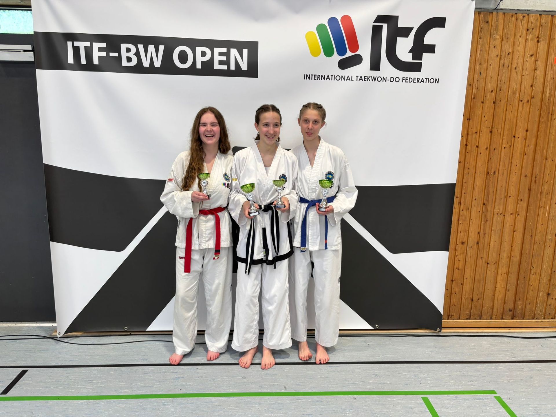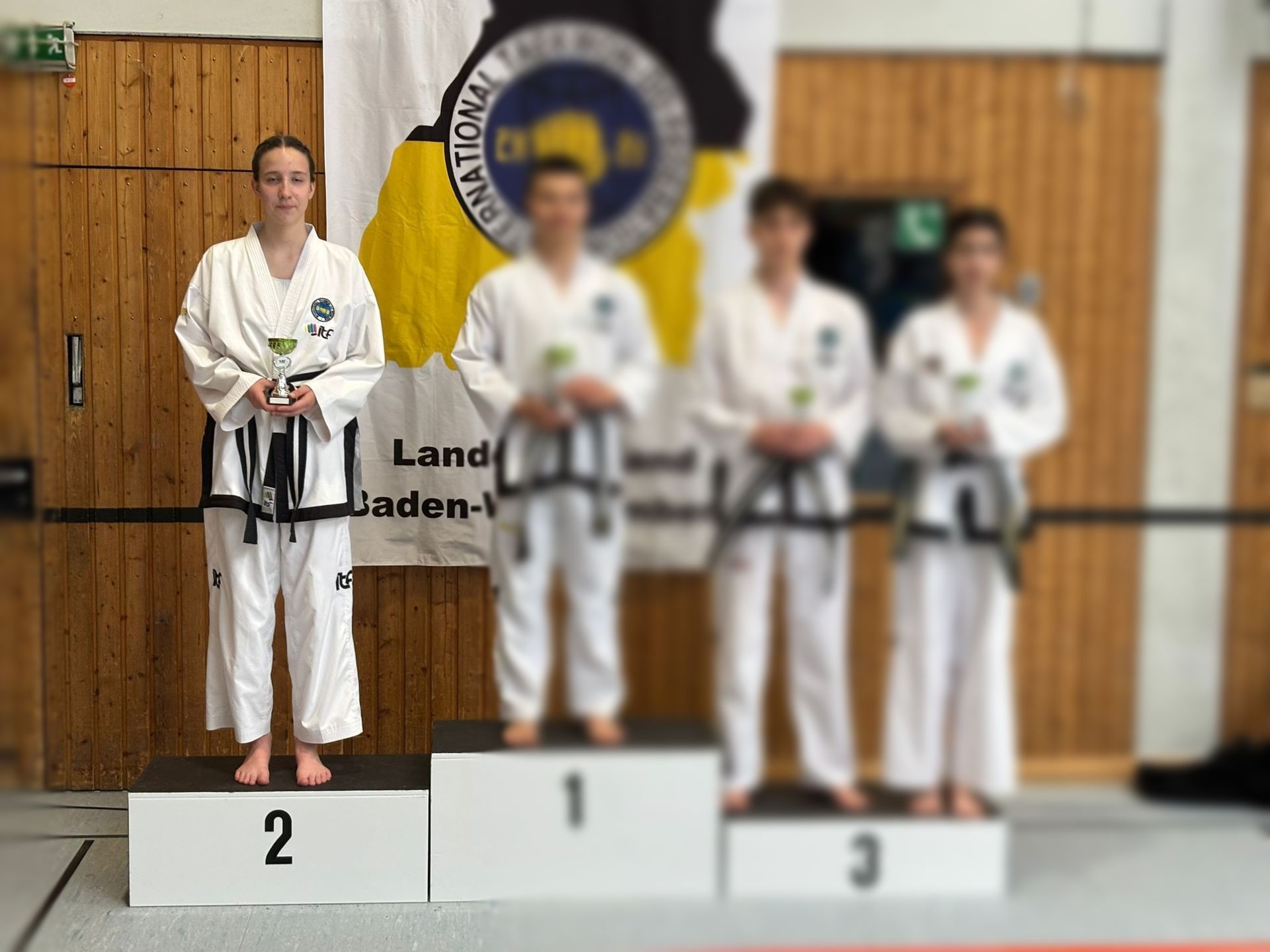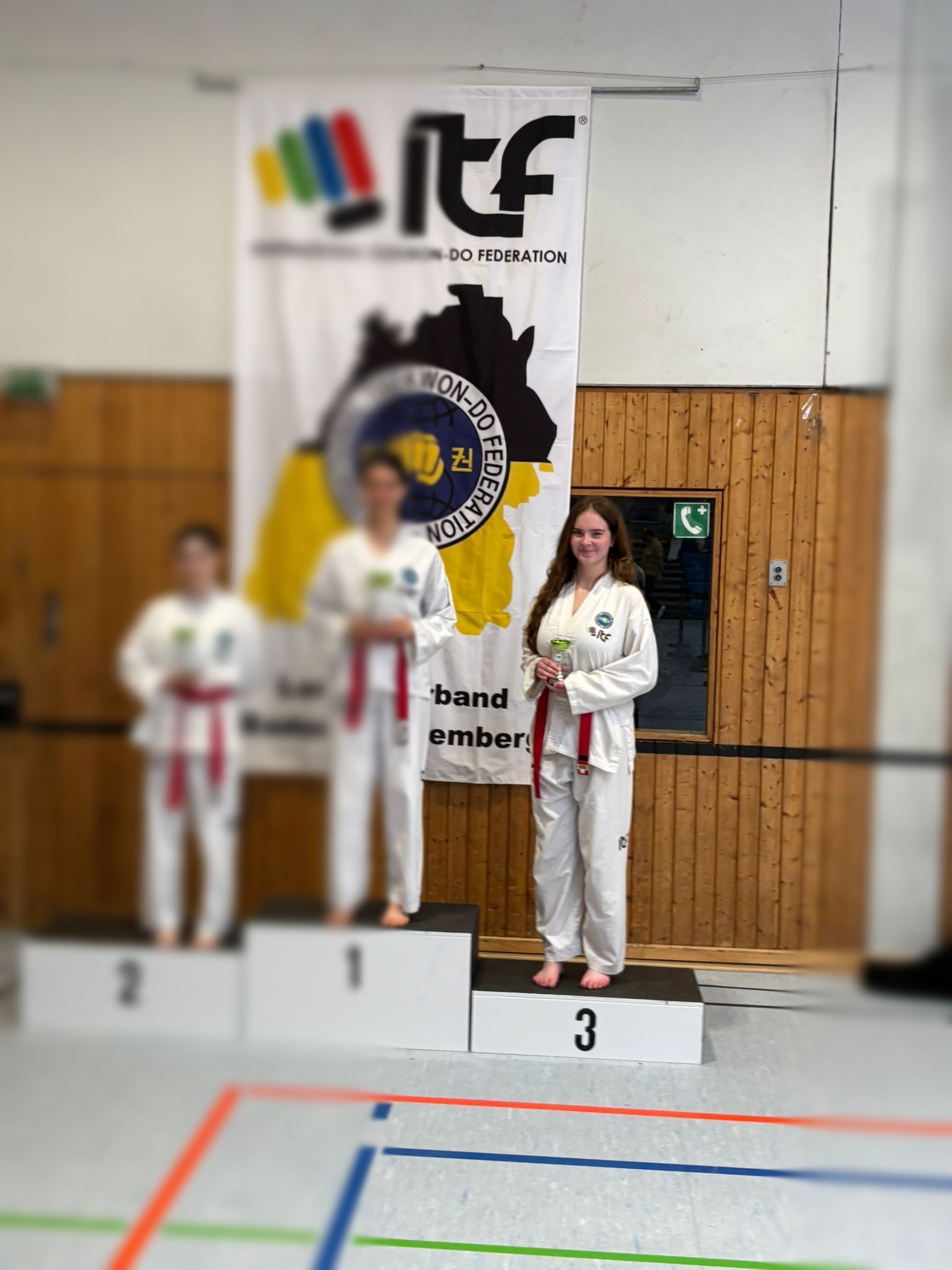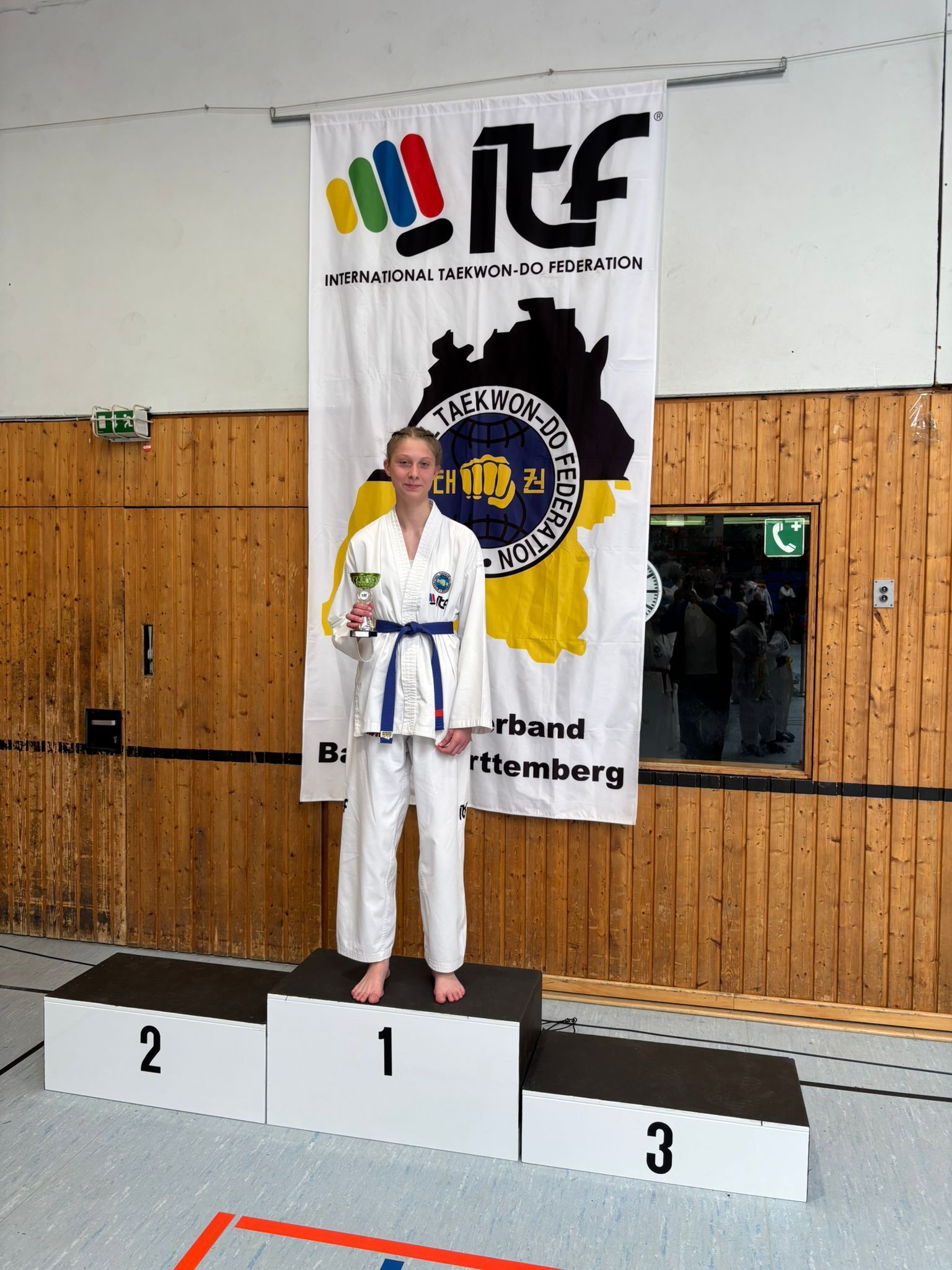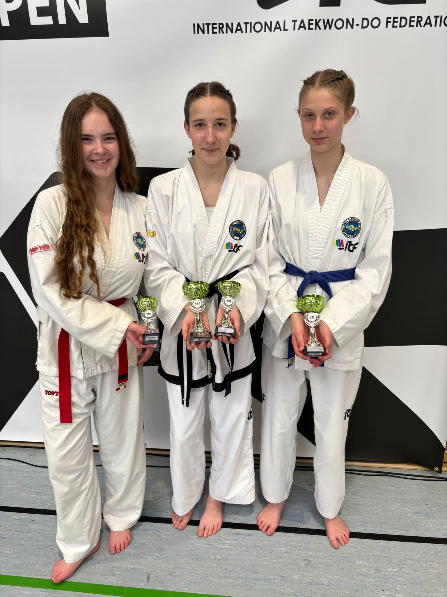 Svea konnte bei der Kategorie Spezialbruchtest, bei der ein Brett in großer Höhe mit einer Fußtechnik umgeklappt werden muss, bei den unter 15jährigen den 1. Platz erzielen. In der Kategorie Tul ihrer Alters- und Graduierungsklasse erreichte sie den 5. Platz. Emily konnte sich ebenfalls in der Spezialbruchtest-Klasse der unter 18jährigen durchsetzen und erreichte ebenfalls den 1. Platz. In ihrer Kategorie der Tul der Sportler*innen mit dem 1. Dan den 2. Platz erreichen. Marlene erreichte den 3. Platz in der Kateorie Tul U18 bis 1. Kup.