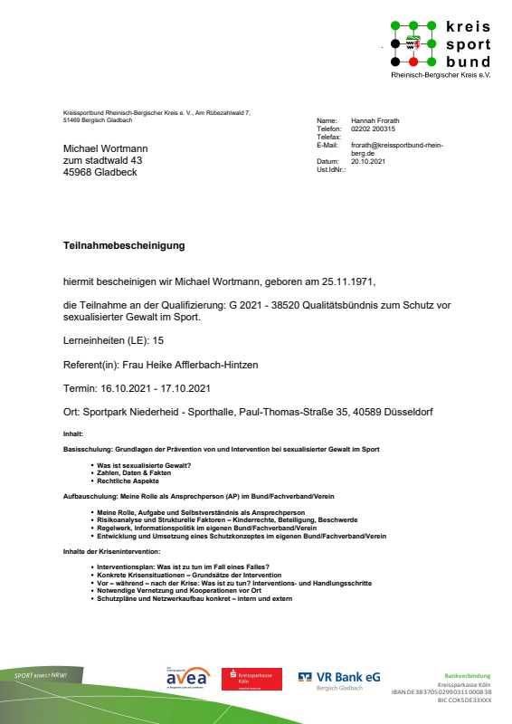 Ansprechpartner Prävention sexualisierte Gewalt im Sport