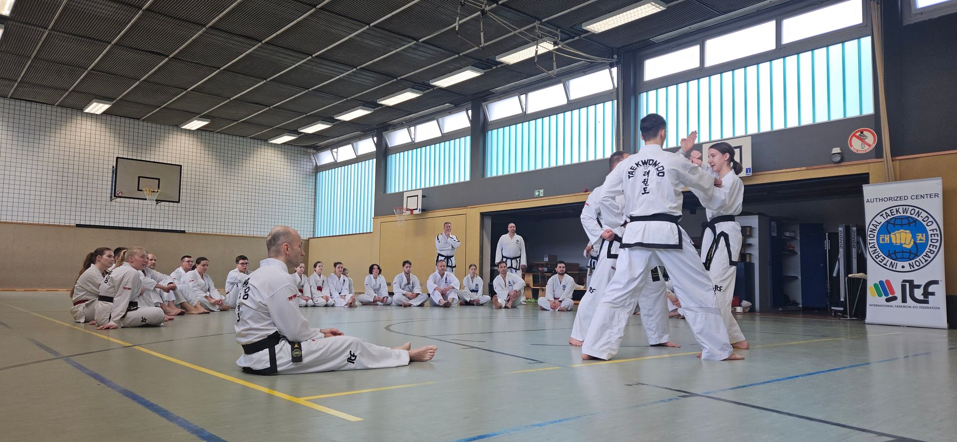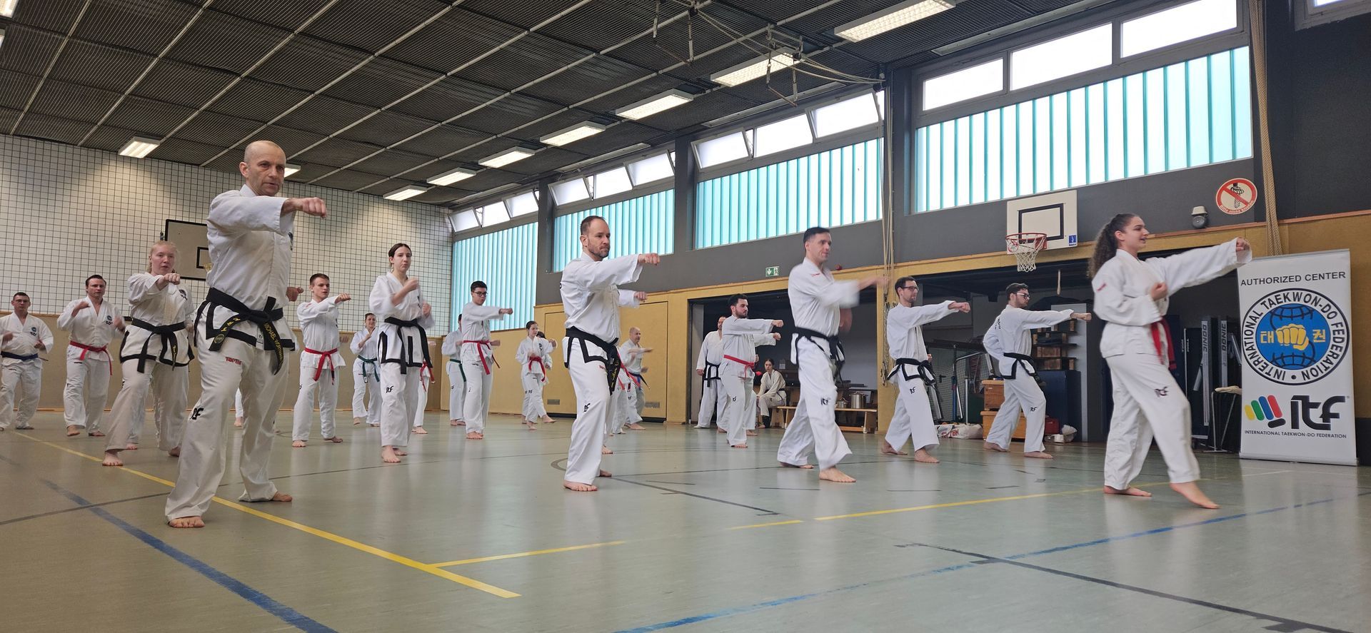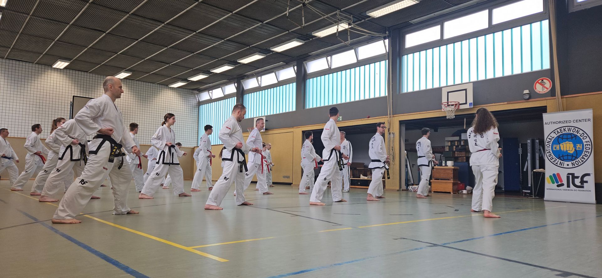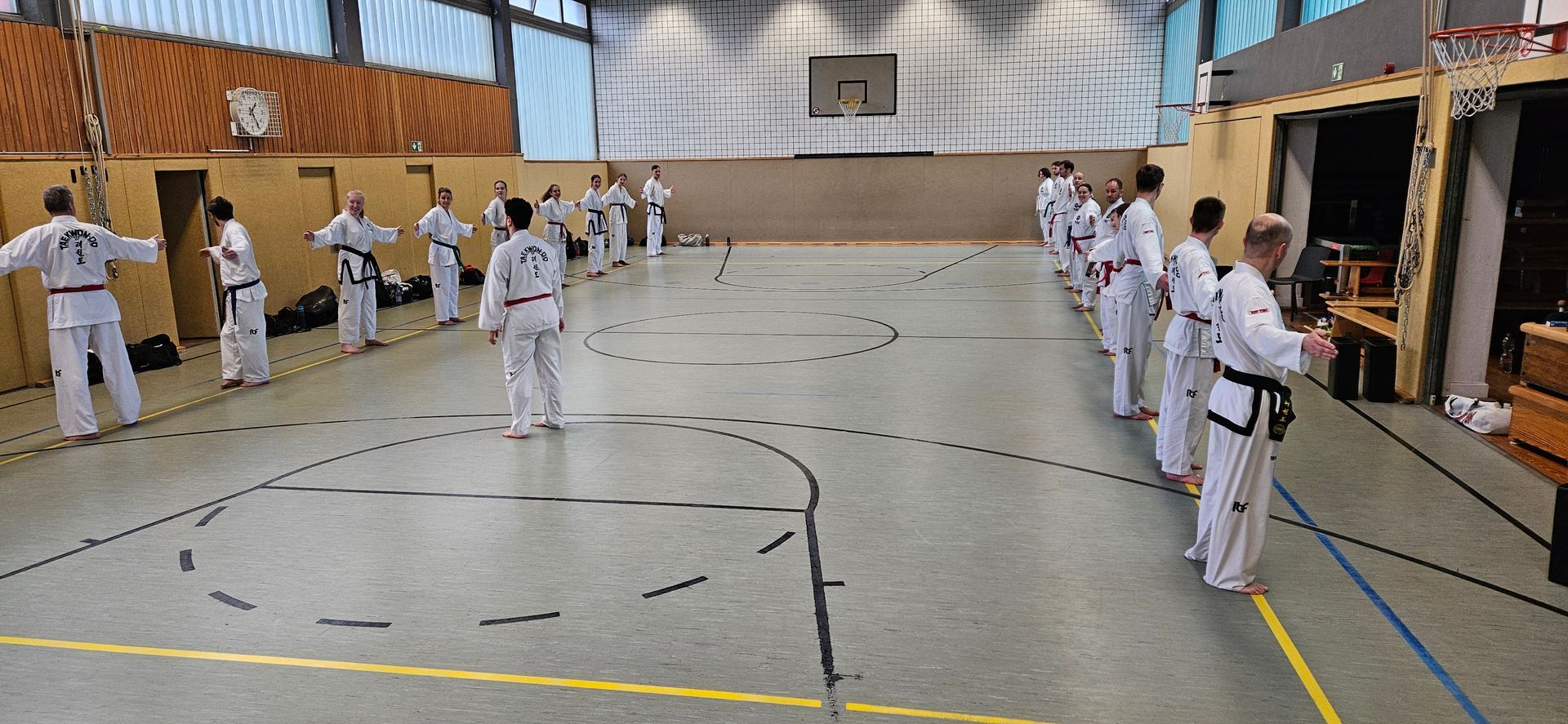 Am 05.04.2025 fand in der Turnhalle der Gesamtschule Horst bereits zum dritten Mal die jährliche Vereinsmeisterschaft des Chang Hun Taekwon-Do Gelsenkirchen e. V. statt. Dieses Mal starteten 56 Teilnehmer*innen im Alter von 6 bis über 50 Jahren in den Kategorien Tul (Formenlauf), Spezialtechnik und Freikampf (Matsogi). Zahlreiche Trainer*innen halfen zudem als Kampfrichter*innen, in der Kinder- und Wettkämpfer*innen-Betreuung. Auch ein paar freiwillige Eltern halfen mit Kuchenspenden oder dem Verkauf der Verpflegung aus. Schon mal ein herzliches Dankeschön dafür ! Nach gemeinsamem Angrüßen und kurzen Begrüßungsworten startete das Turnier in der Kategorie Formenlauf (Tul). Hier zeigten die Wettkämpfer*innen trotz mancher Nervösität gute Leistungen. Auch das Publikum, das größtenteils aus vielen Eltern, Großeltern, Geschwistern, Freunden und Bekannten bestand, sich von dem Können der Teilnehmer*innen überzeugen. Für viele der jüngeren Teilnehmer*innen war es zudem das erste Mal, bei dem sie unter "Wettkampfbedingungen" antraten. In einer Vorführung wurde zudem die Bandbreite des Taekwon-Do gezeigt. Es wurden Tul, Hand- und Fußtechniken sowie Selbstverteidigungstechniken gezeigt. Drei Sportlerinnen hatten zudem eine choreografierte Team-Tul einstudiert. Die Spezialtechnik-Wettbewerbe sorgten wieder für Staunen beim Publikum. Während die jüngeren, niedrig graduierten Kinder sich im Hochsprung über ein Gummiseil maßen, mussten die älteren, fortgeschritteneren Sportler*innen mit dem Fuß ein von Runde zu Runde höher hängendes Brett treffen und möglichst umklappen. Die erreichten Höhen beeindruckten das Publikum. Ein paar der fortgeschritteneren Herren konnten sich gar fast an den internationalen Höhenstandard von über 2,40 m herantasten. Ach diesmal wurden wieder Freikämpfe durchgeführt. Auch dieses Jahr gab es dabei die ein oder andere Überraschung, was die Ergebnisse betrifft. Glücklicherweise kam es auch nur zu geringen Verletzungen, da die Kämpfe überwiegend sehr fair ausgeführt wurden. Ein weiteres kleines Highlight war die Ehrung von Jubilaren des CHTKDG durch den Vorstand im Rahmen dieser Veranstaltung. Unser Vorstandsvorsitzender Olaf Kroll würdigte insbesondere die Brüder Dr. Sebstian Blahout und Christian Blahout, die trotz anfänglicher Widerstände dem Verein seit mittlerweile 25 Jahren die Treue halten. Weitere Jubilare mit 10jähriger Vereinszugehörigkeit, die geehrt wurden waren zudem: Hans-Joachim Sabottka, Gabriel Sabottka, Kai Schmidt, Emily Schmidt, Nina Schmitz, Anton Pham und Tim Jazbec. Allen Jubilaren gratulieren wir nochmals ganz herzlich und freuen uns schon auf eine rege Teilnahme an der jährlichen Vereinsmeisterschaft im nächsten Jahr !