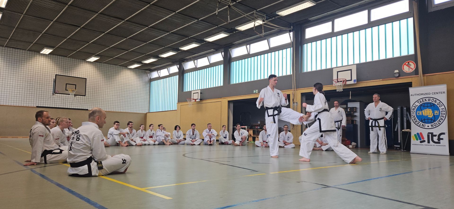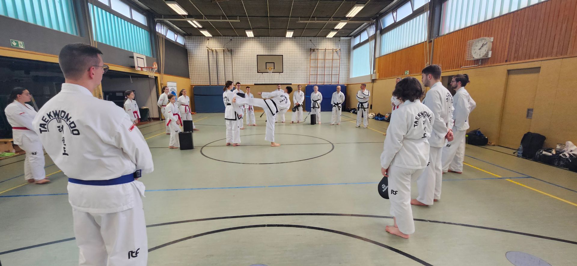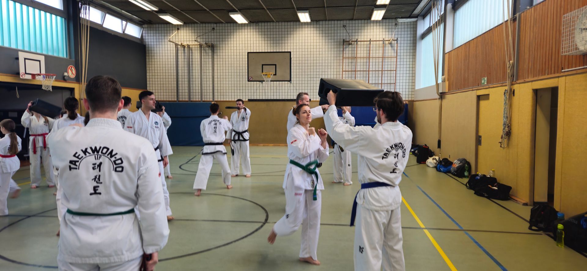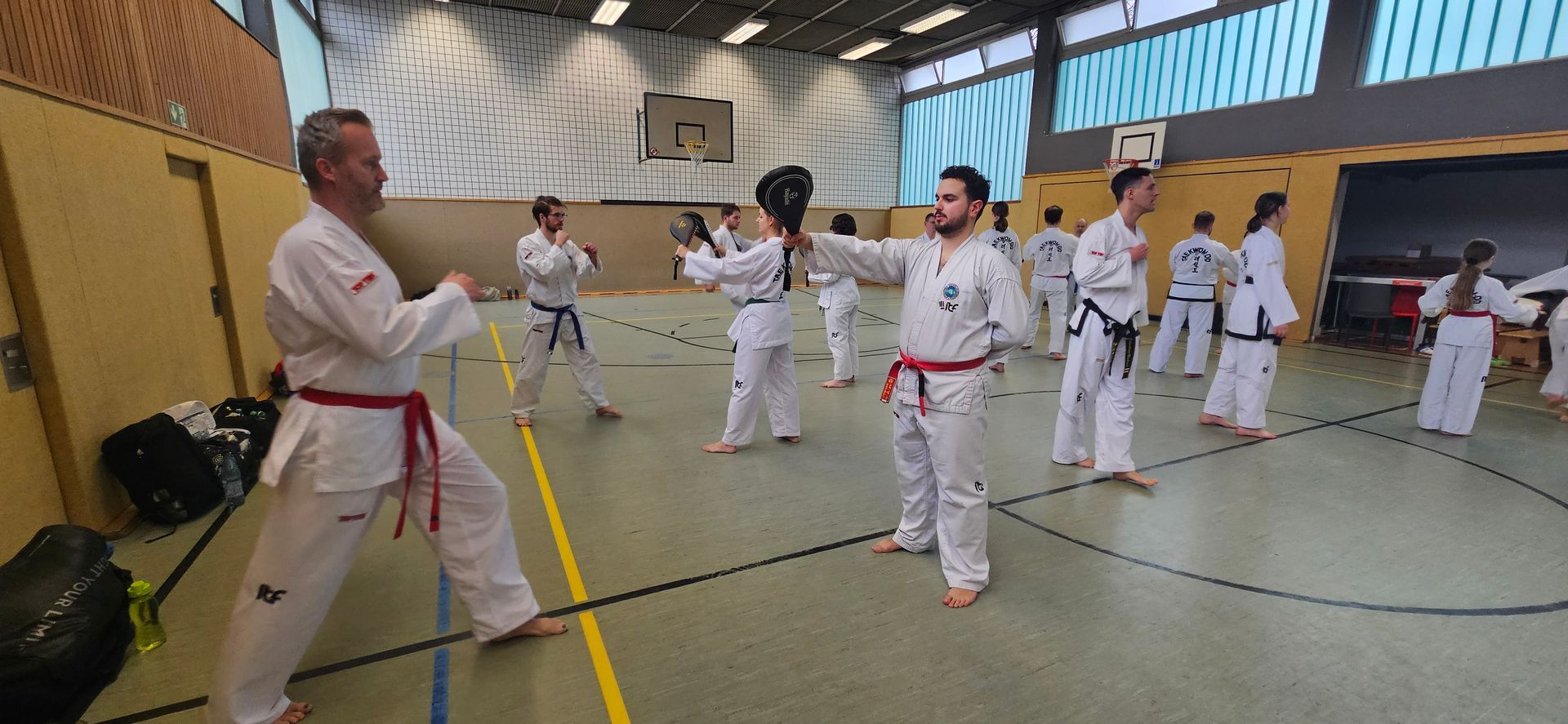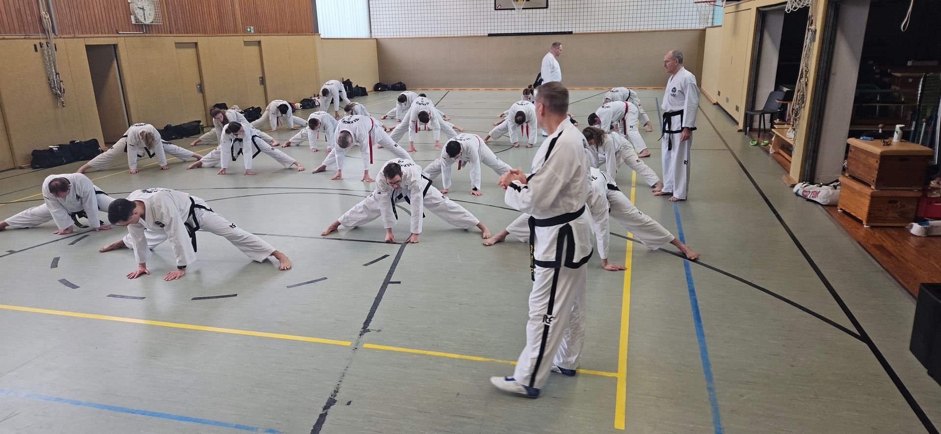 Am 05.04.2025 fand in der Turnhalle der Gesamtschule Horst bereits zum dritten Mal die jährliche Vereinsmeisterschaft des Chang Hun Taekwon-Do Gelsenkirchen e. V. statt. Dieses Mal starteten 56 Teilnehmer*innen im Alter von 6 bis über 50 Jahren in den Kategorien Tul (Formenlauf), Spezialtechnik und Freikampf (Matsogi). Zahlreiche Trainer*innen halfen zudem als Kampfrichter*innen, in der Kinder- und Wettkämpfer*innen-Betreuung. Auch ein paar freiwillige Eltern halfen mit Kuchenspenden oder dem Verkauf der Verpflegung aus. Schon mal ein herzliches Dankeschön dafür ! Nach gemeinsamem Angrüßen und kurzen Begrüßungsworten startete das Turnier in der Kategorie Formenlauf (Tul). Hier zeigten die Wettkämpfer*innen trotz mancher Nervösität gute Leistungen. Auch das Publikum, das größtenteils aus vielen Eltern, Großeltern, Geschwistern, Freunden und Bekannten bestand, sich von dem Können der Teilnehmer*innen überzeugen. Für viele der jüngeren Teilnehmer*innen war es zudem das erste Mal, bei dem sie unter "Wettkampfbedingungen" antraten. In einer Vorführung wurde zudem die Bandbreite des Taekwon-Do gezeigt. Es wurden Tul, Hand- und Fußtechniken sowie Selbstverteidigungstechniken gezeigt. Drei Sportlerinnen hatten zudem eine choreografierte Team-Tul einstudiert. Die Spezialtechnik-Wettbewerbe sorgten wieder für Staunen beim Publikum. Während die jüngeren, niedrig graduierten Kinder sich im Hochsprung über ein Gummiseil maßen, mussten die älteren, fortgeschritteneren Sportler*innen mit dem Fuß ein von Runde zu Runde höher hängendes Brett treffen und möglichst umklappen. Die erreichten Höhen beeindruckten das Publikum. Ein paar der fortgeschritteneren Herren konnten sich gar fast an den internationalen Höhenstandard von über 2,40 m herantasten. Ach diesmal wurden wieder Freikämpfe durchgeführt. Auch dieses Jahr gab es dabei die ein oder andere Überraschung, was die Ergebnisse betrifft. Glücklicherweise kam es auch nur zu geringen Verletzungen, da die Kämpfe überwiegend sehr fair ausgeführt wurden. Ein weiteres kleines Highlight war die Ehrung von Jubilaren des CHTKDG durch den Vorstand im Rahmen dieser Veranstaltung. Unser Vorstandsvorsitzender Olaf Kroll würdigte insbesondere die Brüder Dr. Sebstian Blahout und Christian Blahout, die trotz anfänglicher Widerstände dem Verein seit mittlerweile 25 Jahren die Treue halten. Weitere Jubilare mit 10jähriger Vereinszugehörigkeit, die geehrt wurden waren zudem: Hans-Joachim Sabottka, Gabriel Sabottka, Kai Schmidt, Emily Schmidt, Nina Schmitz, Anton Pham und Tim Jazbec. Allen Jubilaren gratulieren wir nochmals ganz herzlich und freuen uns schon auf eine rege Teilnahme an der jährlichen Vereinsmeisterschaft im nächsten Jahr !