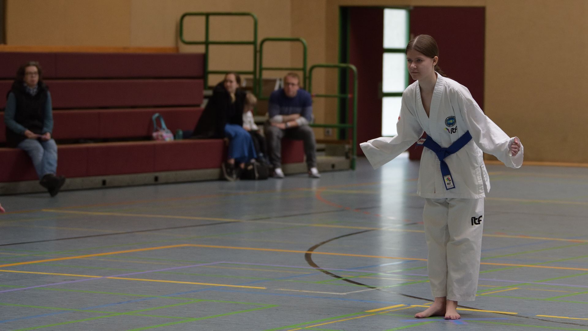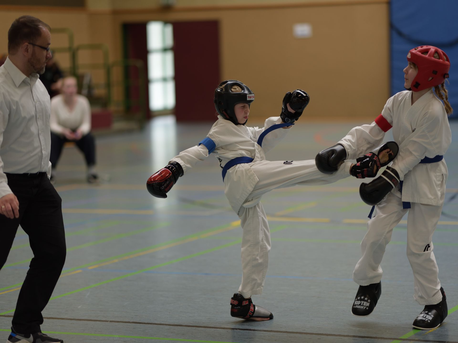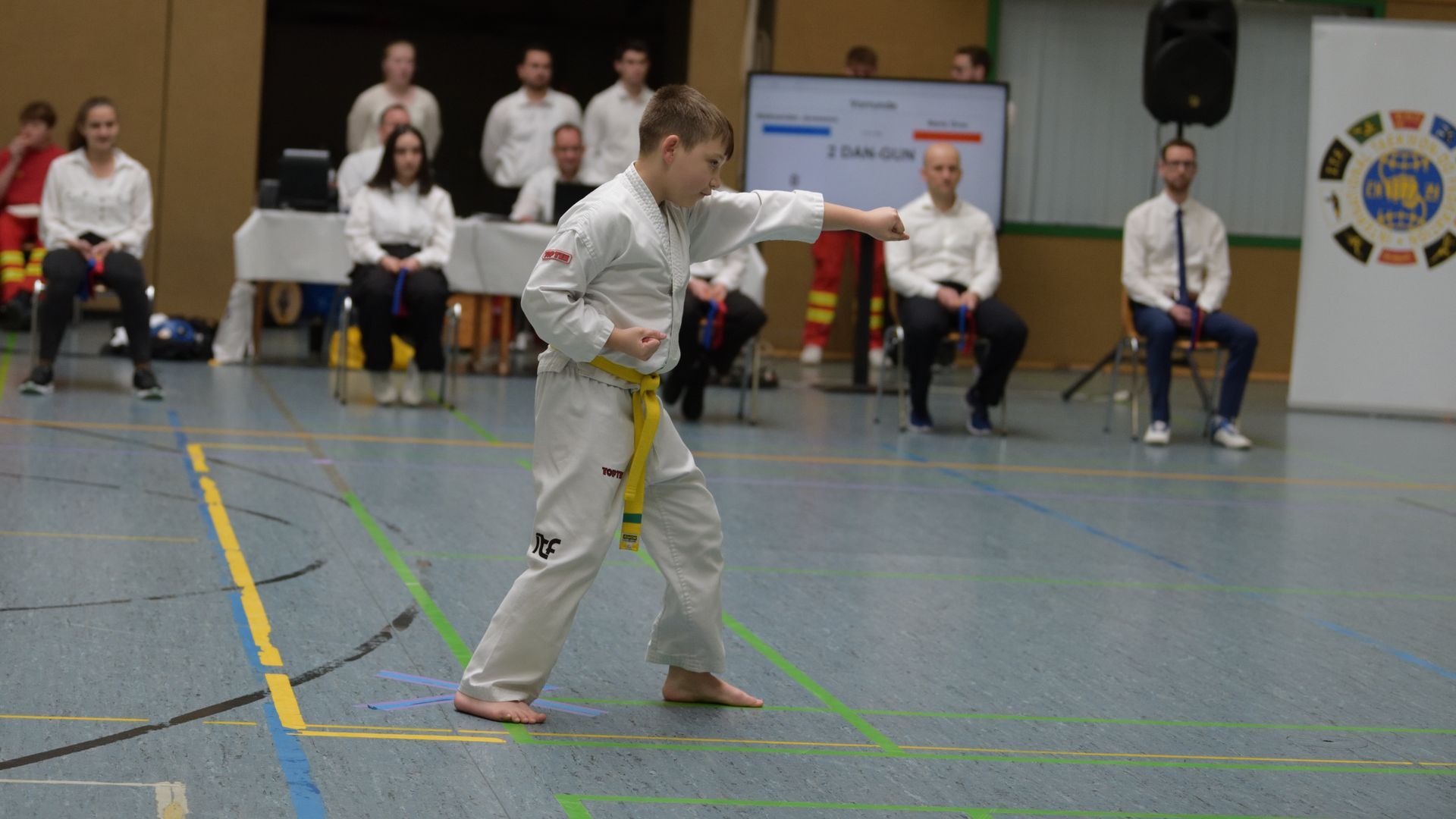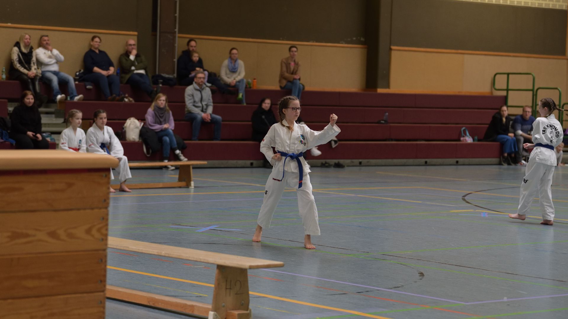 Das Turnier startete in der Kategorie Formenlauf (Tul). Hier zeigten die Wettkämpfer*innen gute Leistungen, auch wenn der/die ein oder andere sichtlich nervös und aufgeregt war. So konnte sich auch das Publikum, das größtenteils aus vielen Eltern, Großeltern und Geschwistern bestand, sich von dem Können ihrer Kinder überzeugen.
