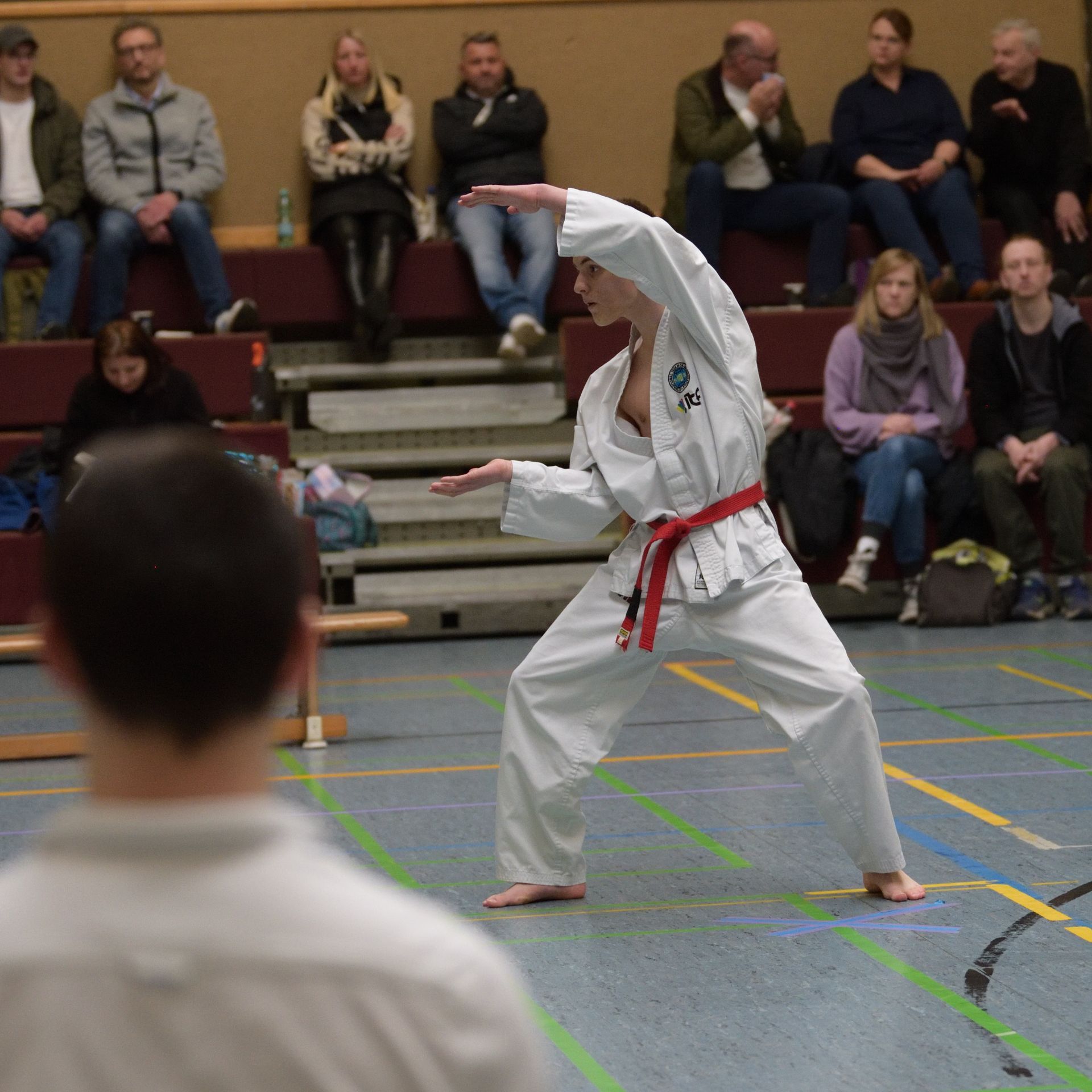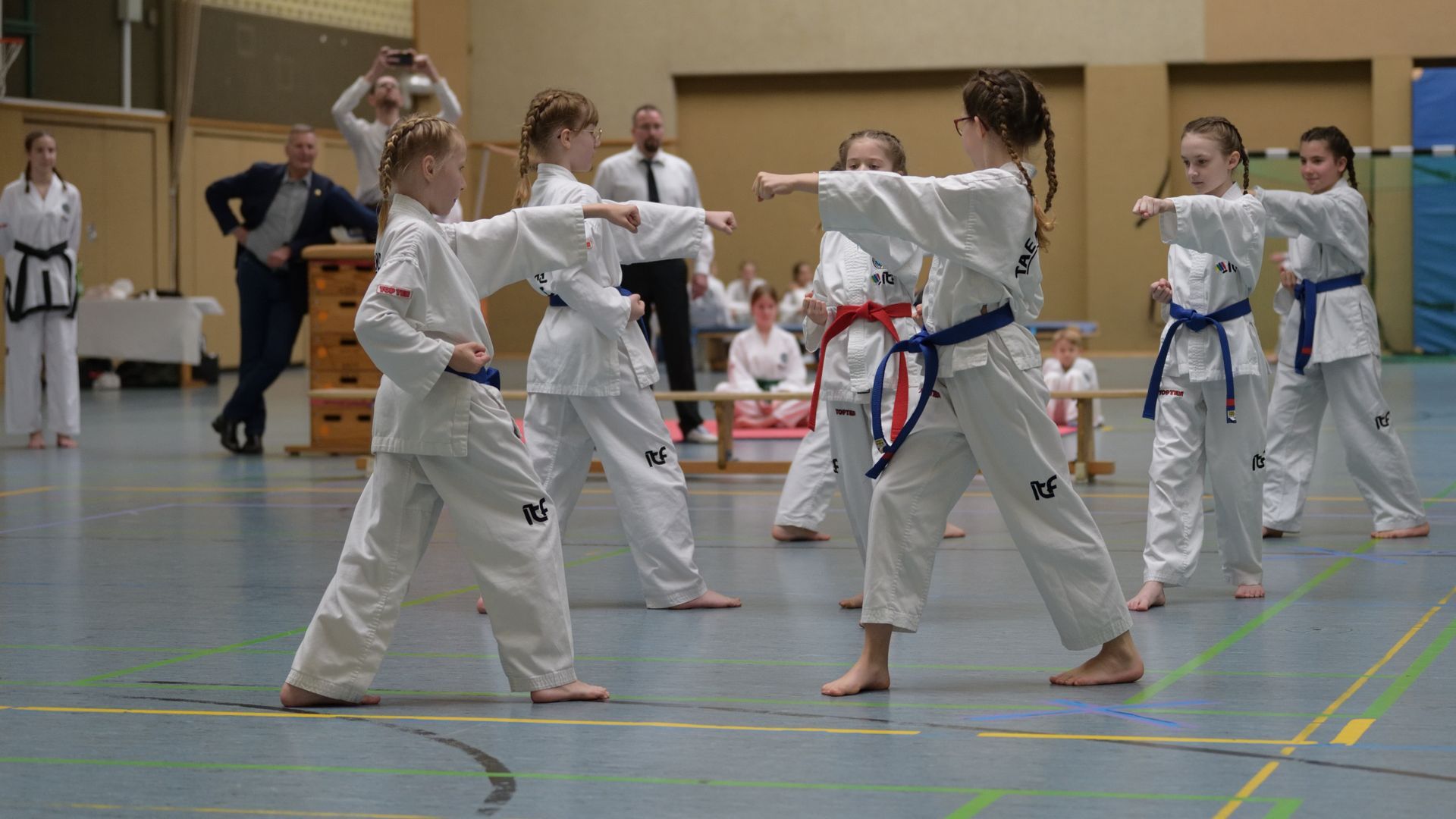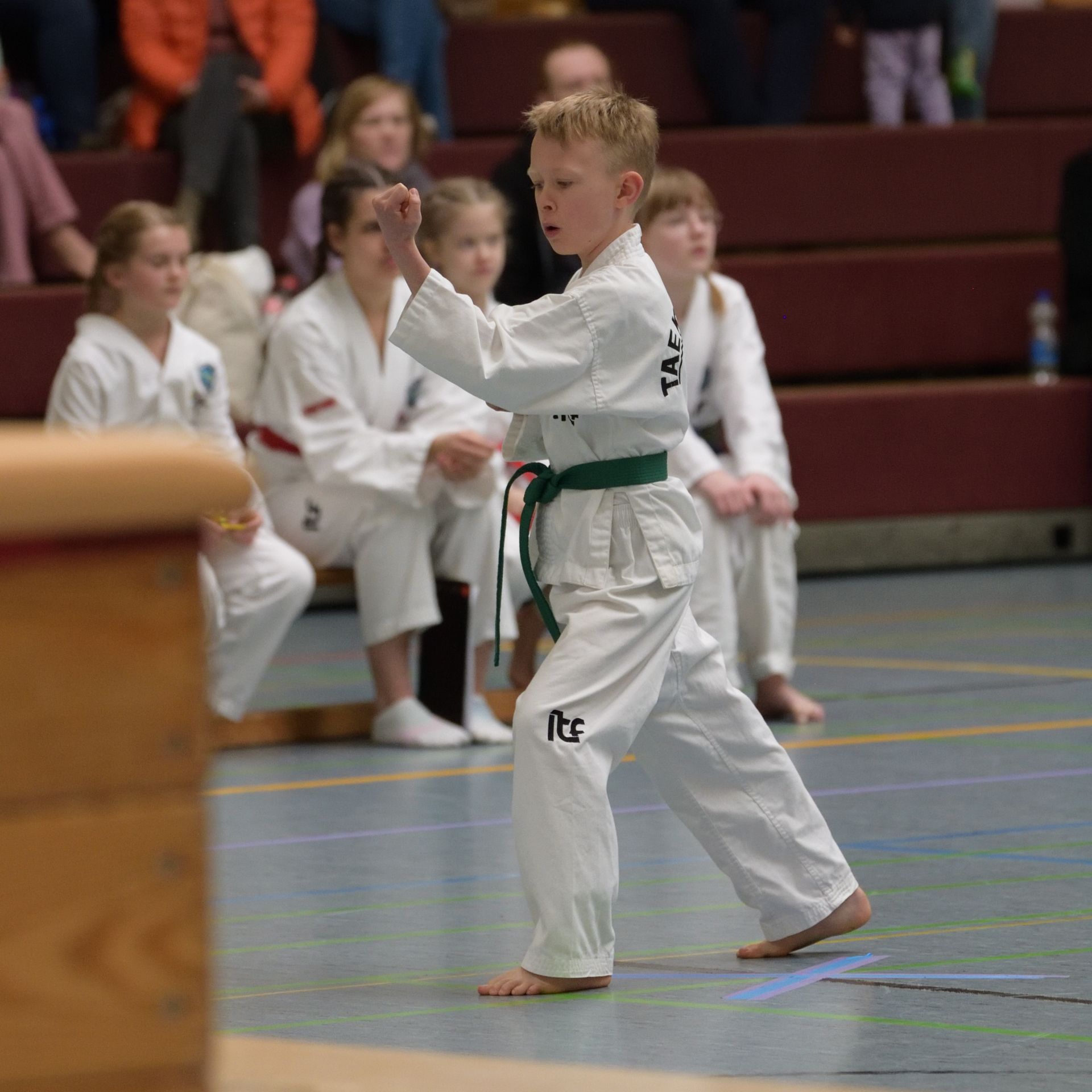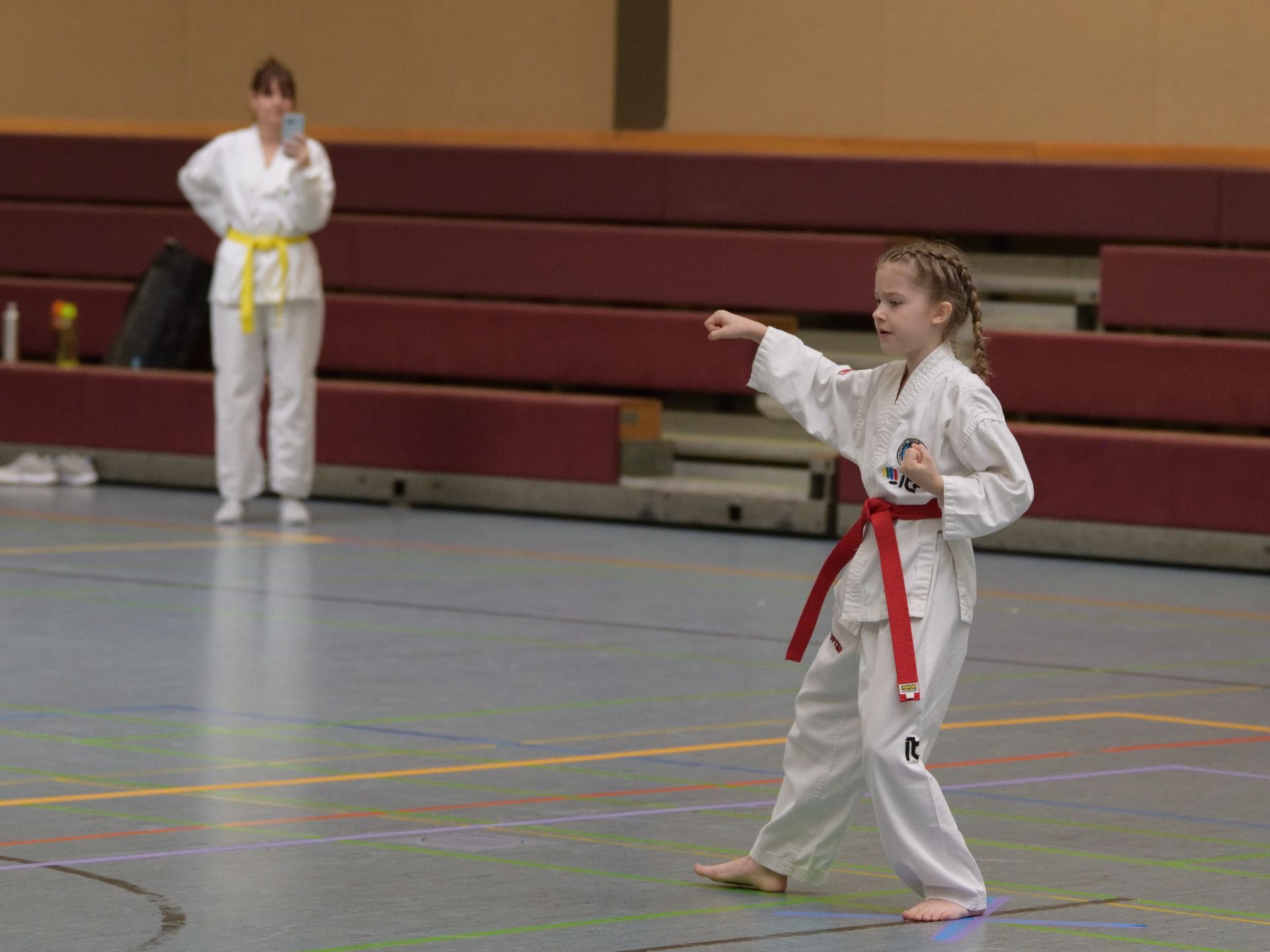 Das Turnier startete in der Kategorie Formenlauf (Tul). Hier zeigten die Wettkämpfer*innen gute Leistungen, auch wenn der/die ein oder andere sichtlich nervös und aufgeregt war. So konnte sich auch das Publikum, das größtenteils aus vielen Eltern, Großeltern und Geschwistern bestand, sich von dem Können ihrer Kinder überzeugen.