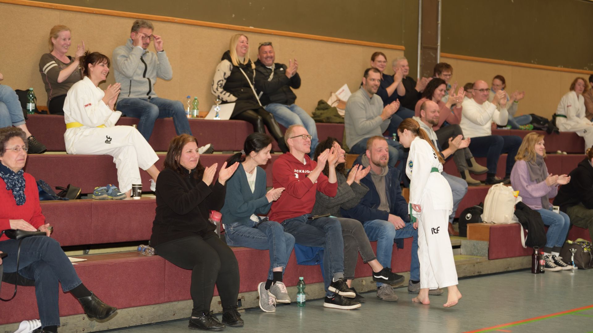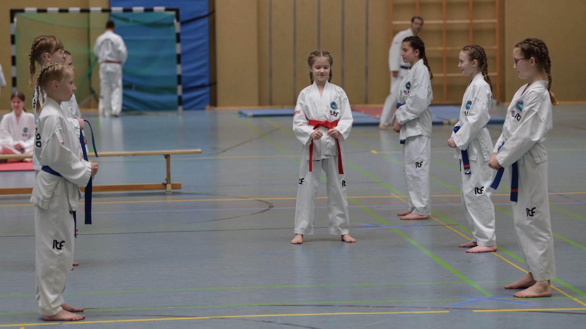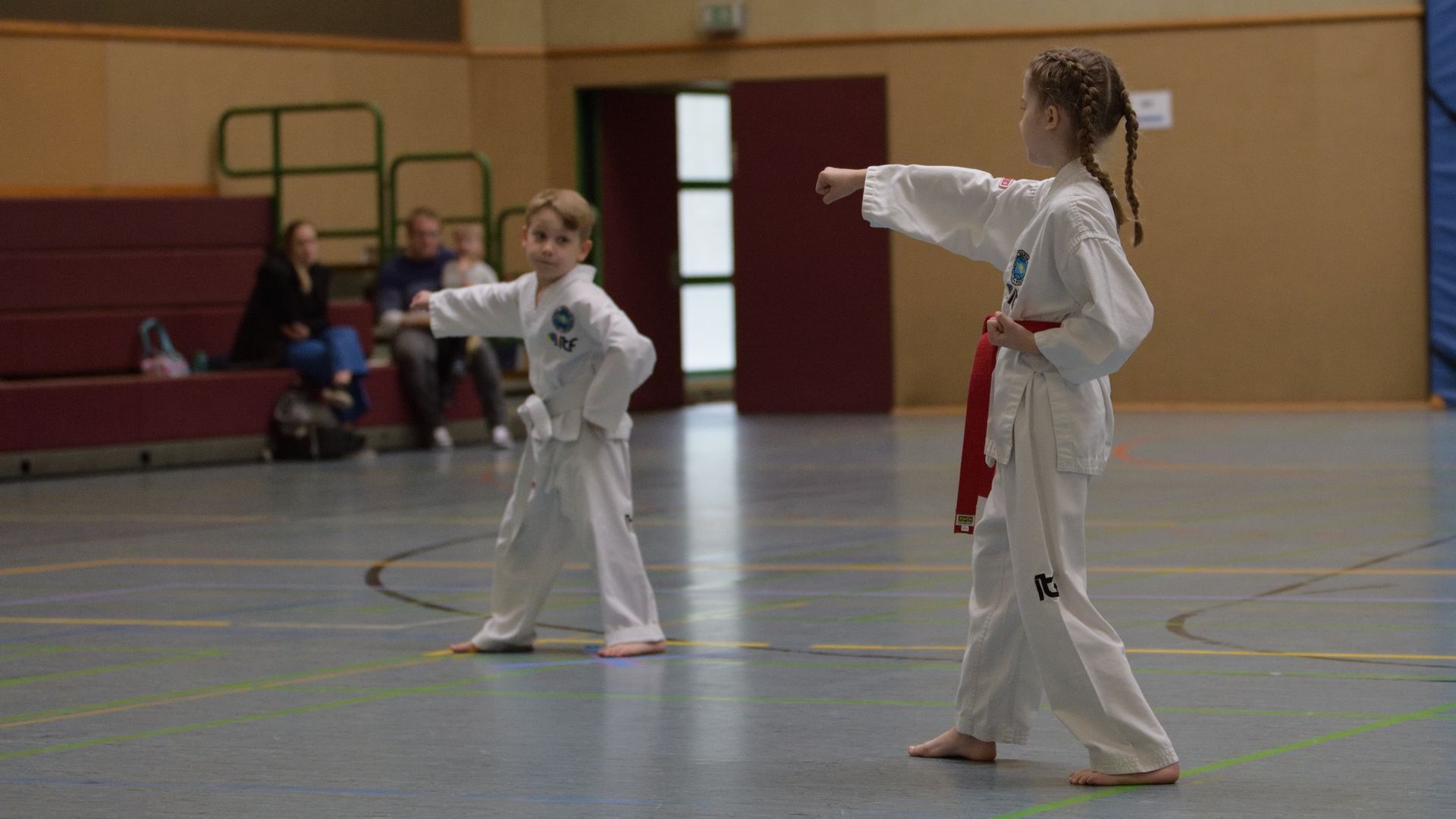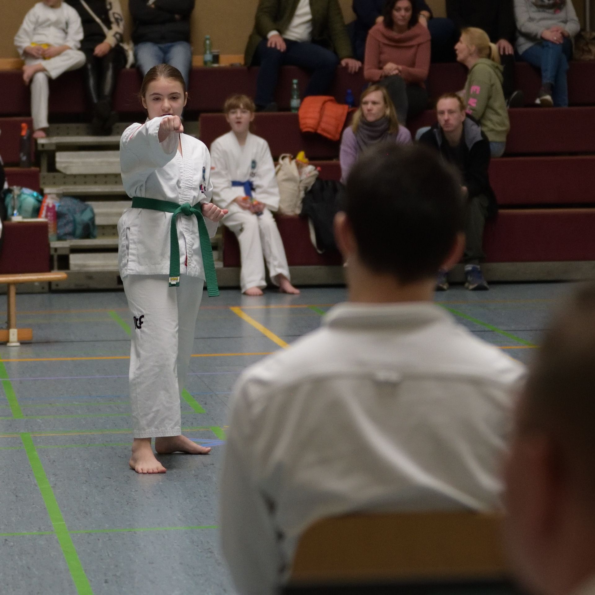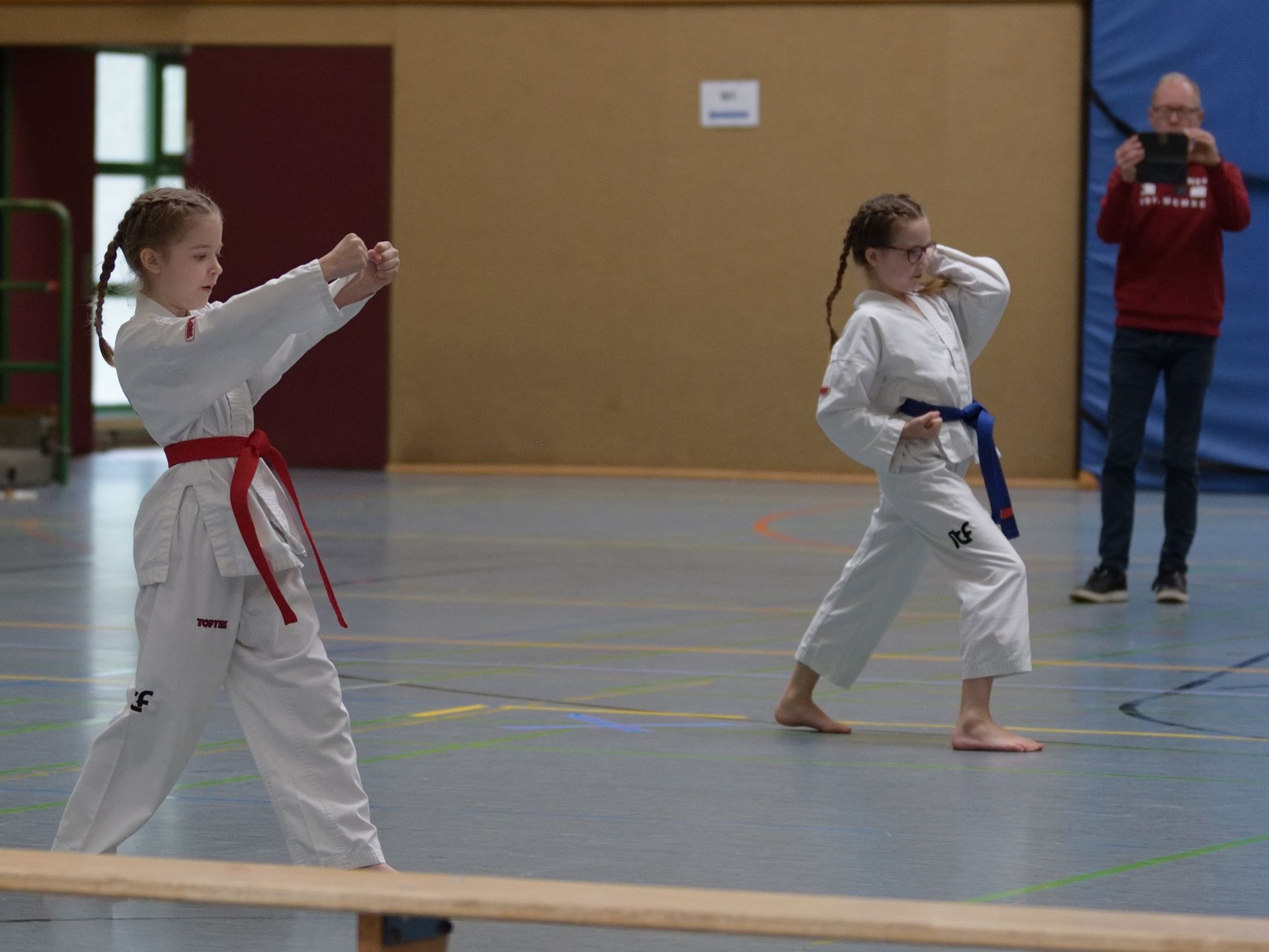 Das Turnier startete in der Kategorie Formenlauf (Tul). Hier zeigten die Wettkämpfer*innen gute Leistungen, auch wenn der/die ein oder andere sichtlich nervös und aufgeregt war. So konnte sich auch das Publikum, das größtenteils aus vielen Eltern, Großeltern und Geschwistern bestand, sich von dem Können ihrer Kinder überzeugen.