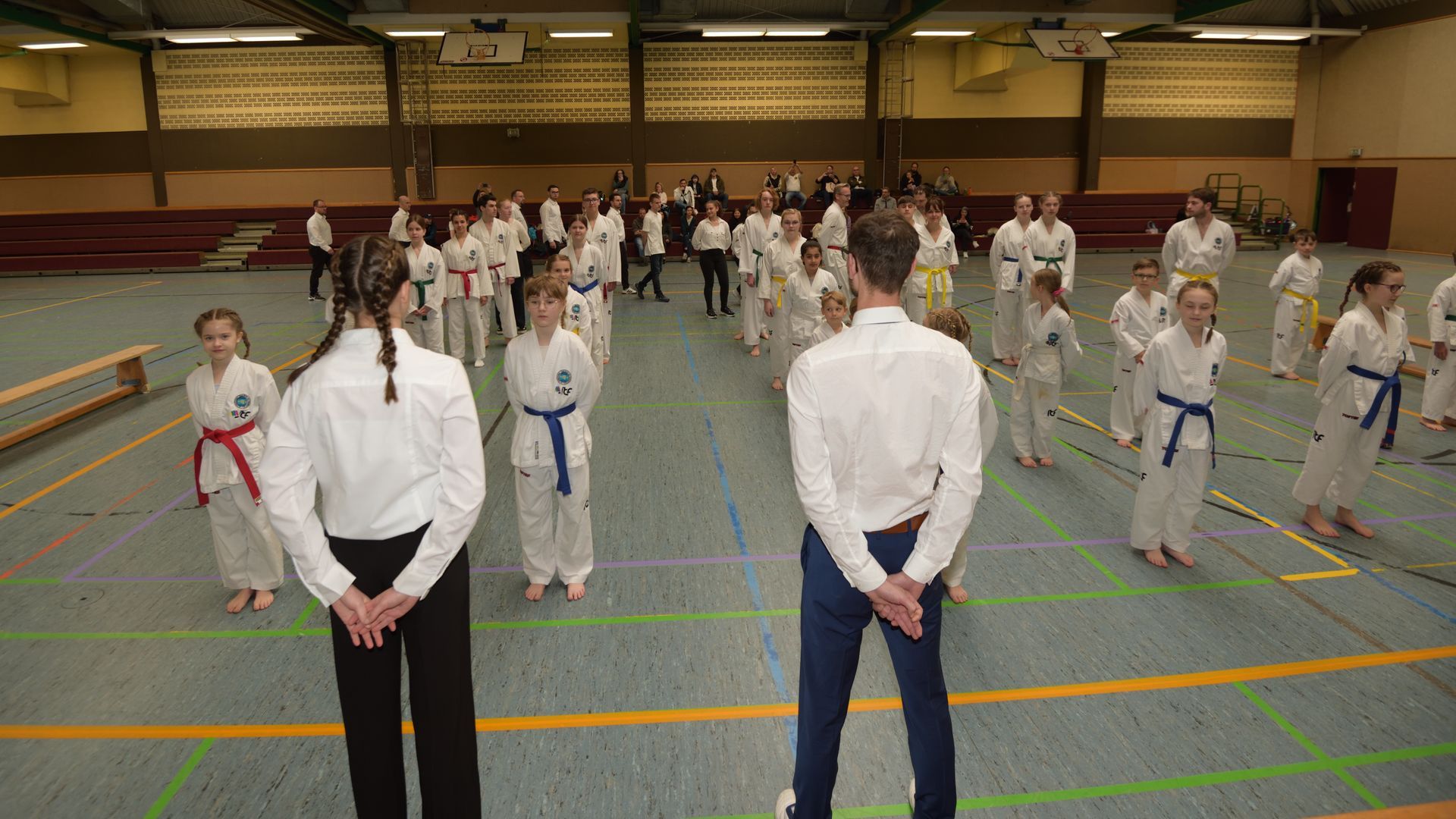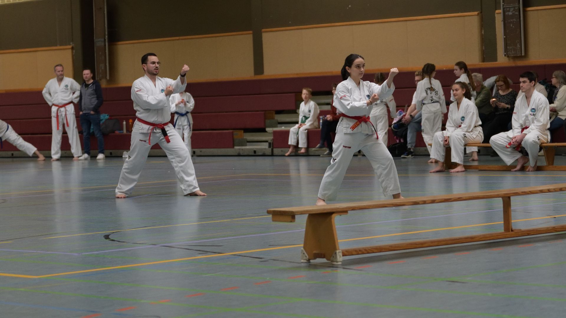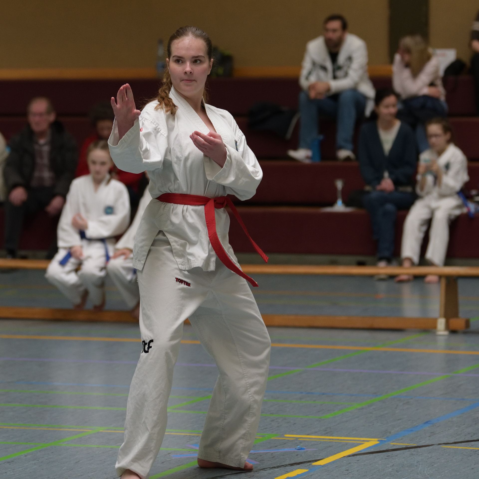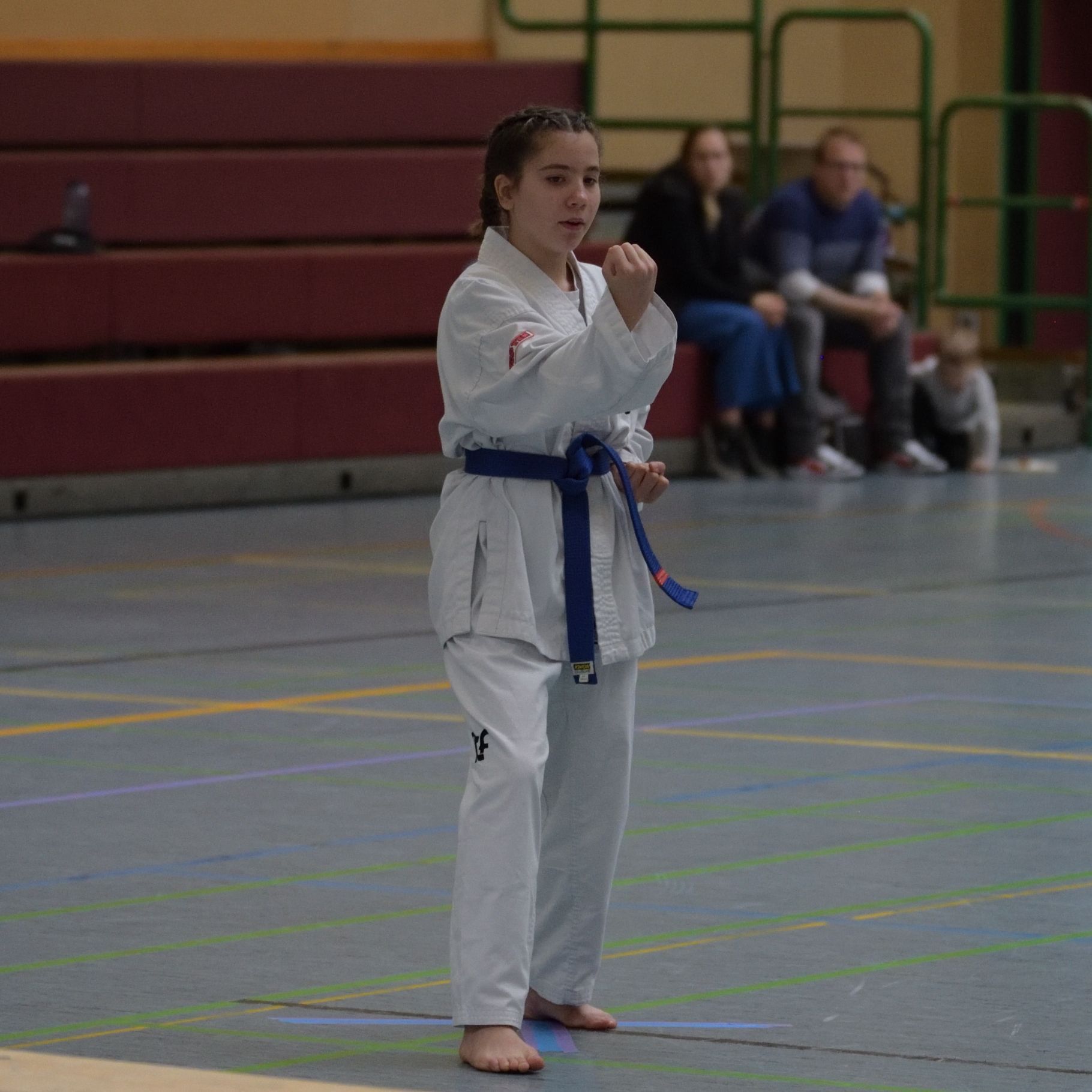 Das Turnier startete in der Kategorie Formenlauf (Tul). Hier zeigten die Wettkämpfer*innen gute Leistungen, auch wenn der/die ein oder andere sichtlich nervös und aufgeregt war. So konnte sich auch das Publikum, das größtenteils aus vielen Eltern, Großeltern und Geschwistern bestand, sich von dem Können ihrer Kinder überzeugen.